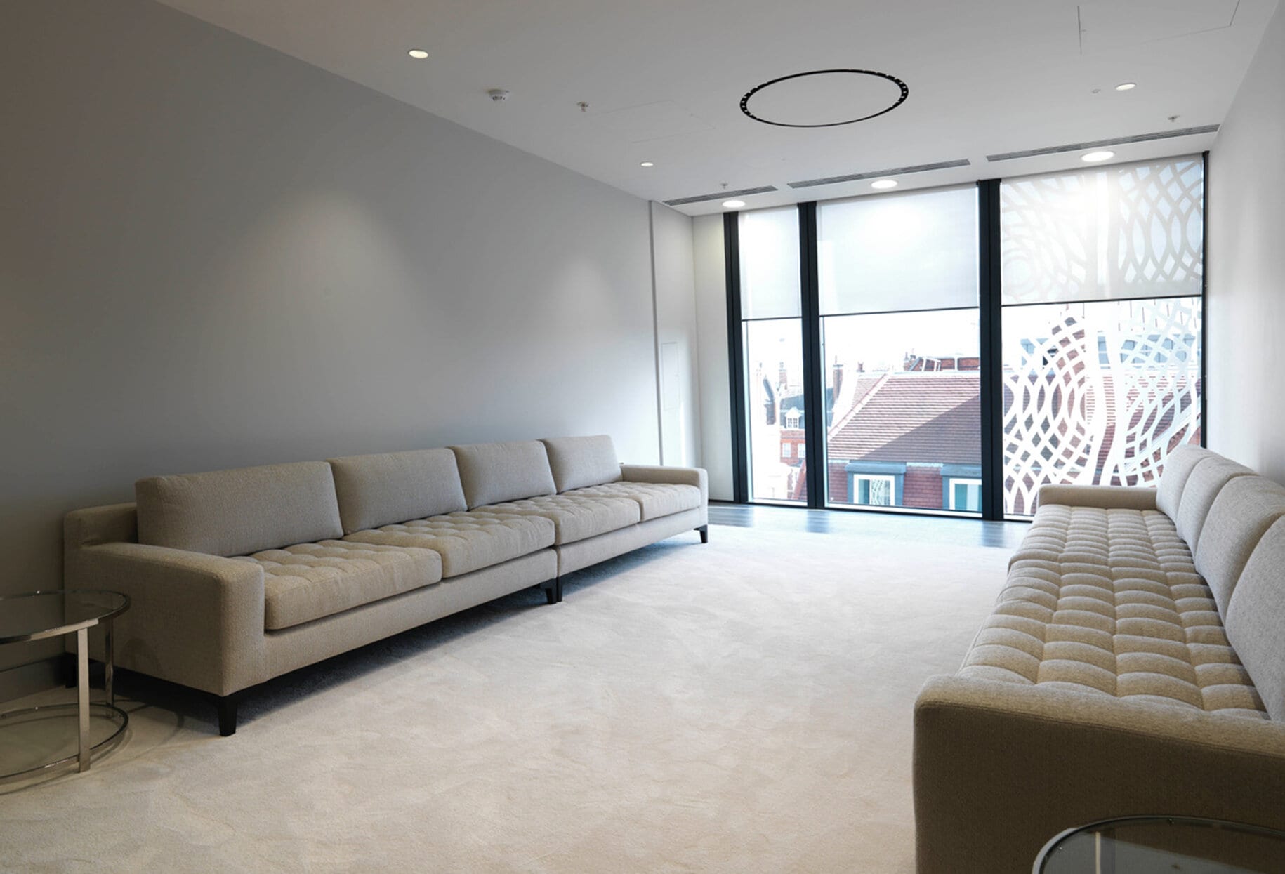Seating plays a key role in keeping the rooms comfortable without loosening the overall look. Meridiani armchairs and benches were selected to match the distinct, refined mood of the interiors. Their presence is quiet but specific. They hold the line between hospitality and formality, which matters in a workplace where conversations are focused and time is valued.
