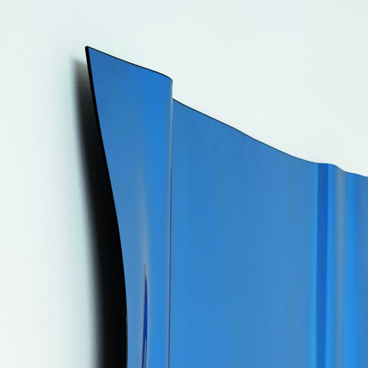In the blue glass version, the reflection carries a subtle tone that can cool down bright interiors. In extralight, it stays clean and neutral, letting materials and color in the room do the talking. Maestrale from glasitalia feels best when given a little space around it.