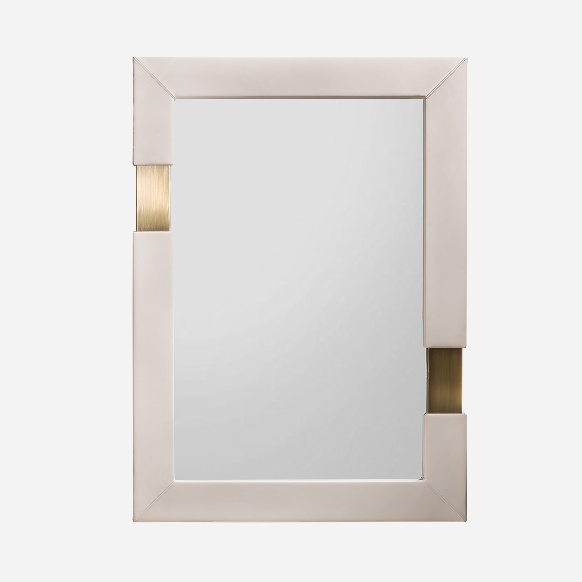 Boatto Martino Studio sets up a simple, honest structure: frame, metal blocks, and a choice of finishes. Trilogy-R is offered with leather or wood around the mirror, paired with metal details that feel substantial to the touch. The proportions are generous, at roughly 39.4 inches in width, 55.1 inches in height, and just under 2 inches in depth. At about 82 pounds, it has a reassuring presence on the wall, with a volume close to 7.1 cubic feet. Nothing feels light in the wrong way; the construction is straightforward and robust.