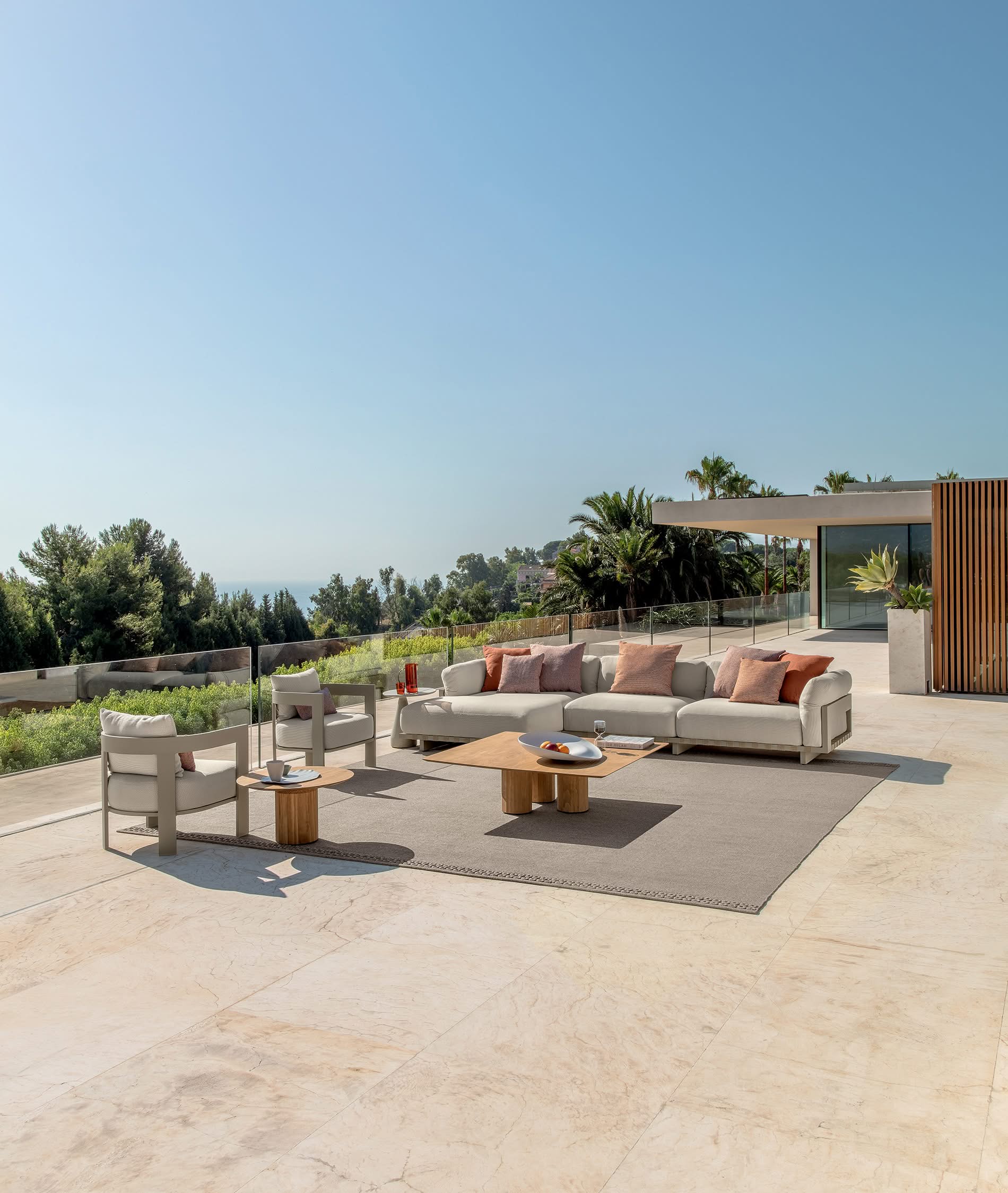 An aluminum structure forms the chair’s core, chosen for its inherent strength and neat precision. It delivers stability without visual or physical heaviness, which is exactly the point. The joinery reads clean and intentional, so the architecture stays crisp over time. Cushions are tailored with care: seams align, edges are trimmed, and the fill offers a fine-tuned balance of support and give. Nothing feels overstuffed or slack. It’s a measured build—solid where it needs to be, yielding where it should be—that favors daily use as much as first impressions.