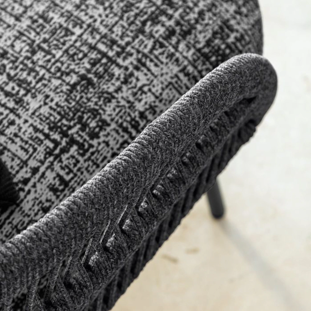 An aluminum structure forms the backbone, chosen for outdoor resilience and a crisp, lean look. Around it, durable nautical rope is hand-woven for texture and strength, engineered to resist the elements. No fuss, no fragile parts—just a smart, weather-ready build. At approximately 36.2 inches wide, 35.4 inches deep, and 43.3 inches high, it offers presence without overwhelming smaller terraces. The seat height sits around 11.8 inches for a grounded lounge posture. Weight is about 26.5 pounds, light enough to reposition when the sun shifts.