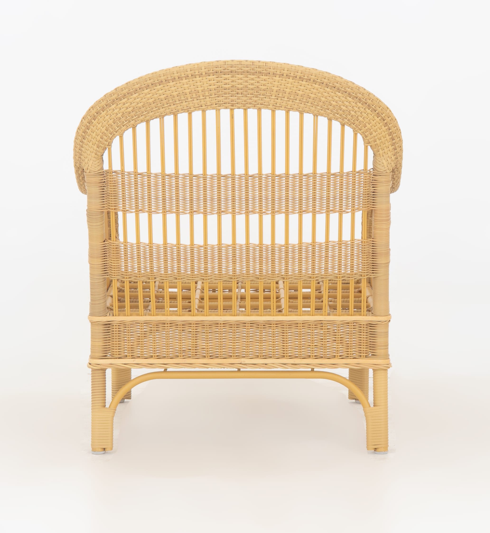 The Sofia Armchair from the Sofia Collection by Melaaura is a refined outdoor piece that balances sculptural elegance with relaxed comfort. Designed by Jamela Alawneh, the chair reflects a thoughtful interpretation of classic woven craftsmanship, reimagined for contemporary outdoor living.