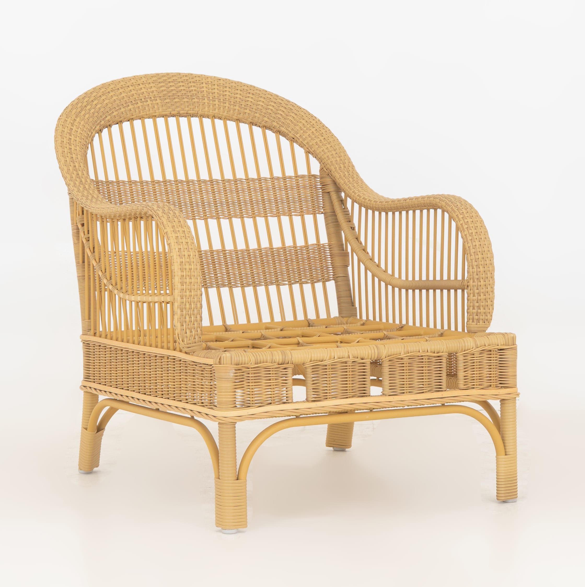 Its softly curved backrest and gently flowing arms create a welcoming silhouette that feels both structured and inviting. The intricate woven detailing gives the piece a sense of lightness while adding rich texture and visual depth. Every line of the chair is intentional—from the arched back that cradles the body to the elevated base that gives it a graceful presence in any setting.