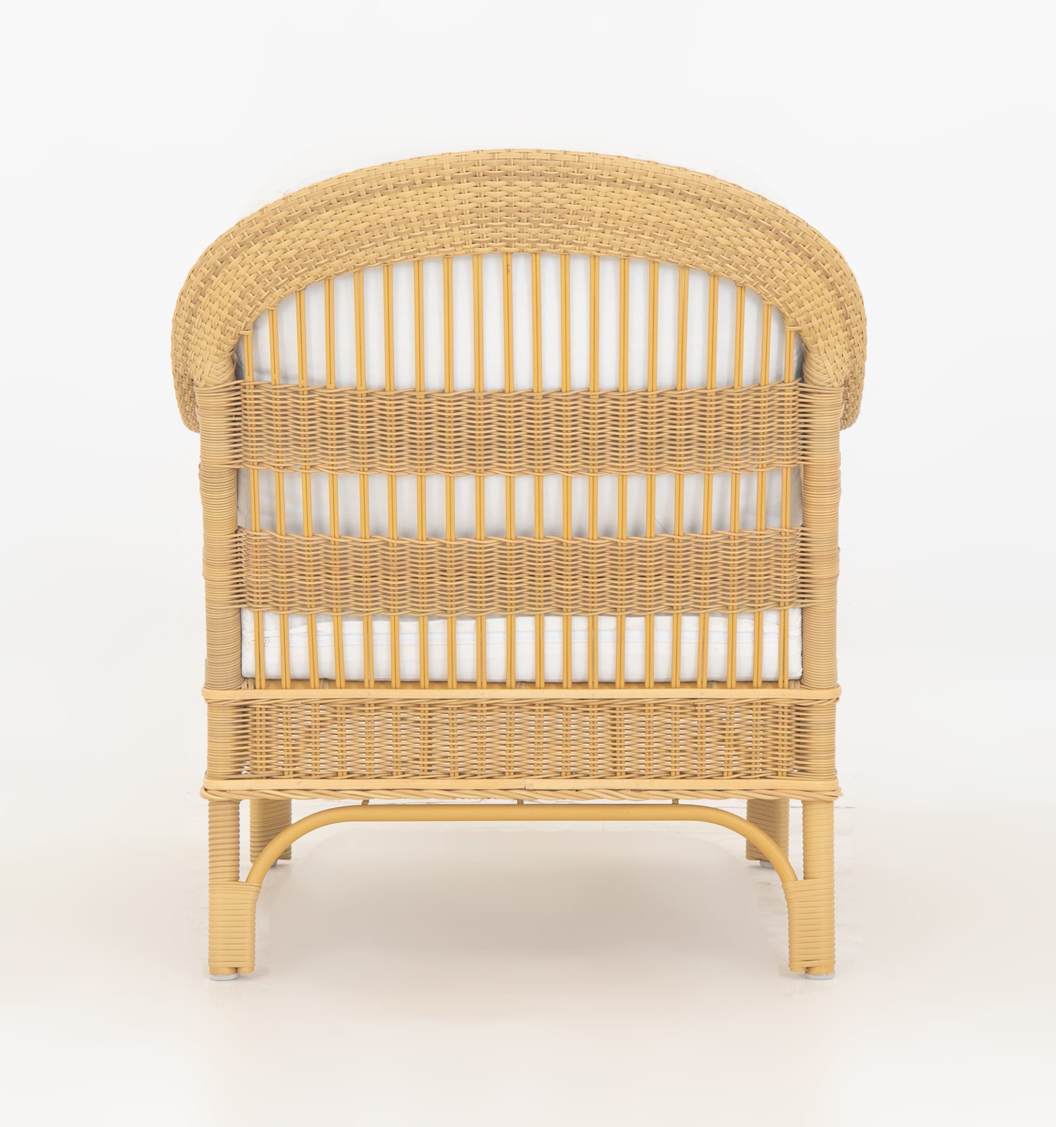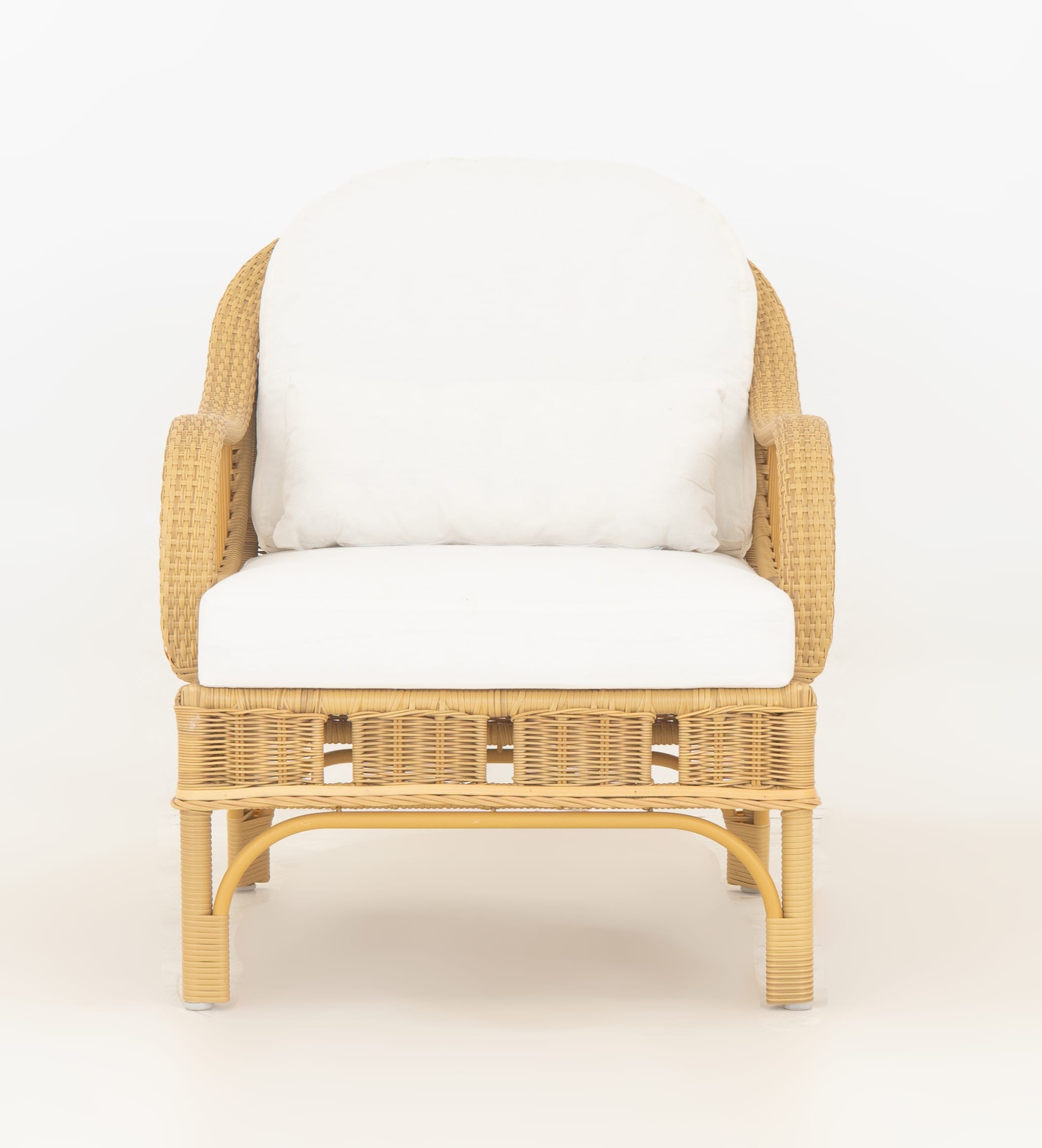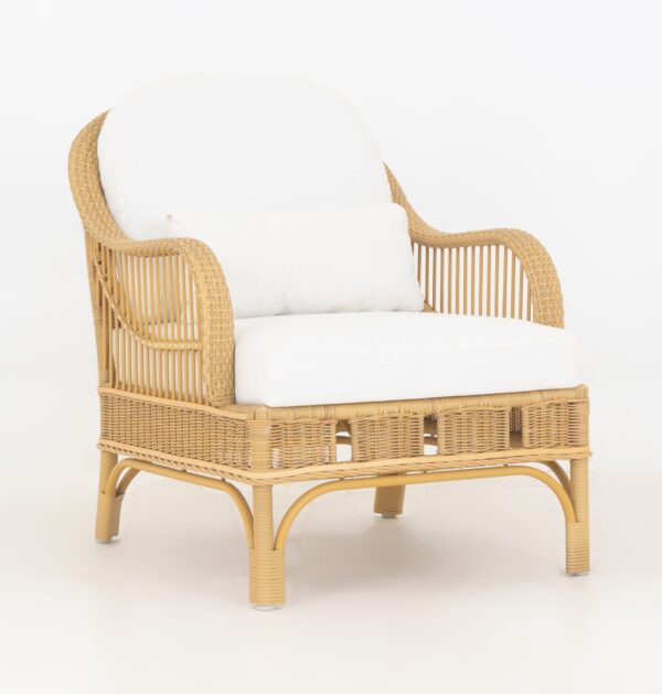 Crafted for outdoor environments, the Sofia Armchair combines durability with understated sophistication. The natural warmth of its materials pairs beautifully with outdoor surroundings, whether placed on a shaded terrace, a garden lounge, or a poolside retreat. A generously cushioned seat and backrest provide comfort while maintaining the chair’s clean, architectural profile.