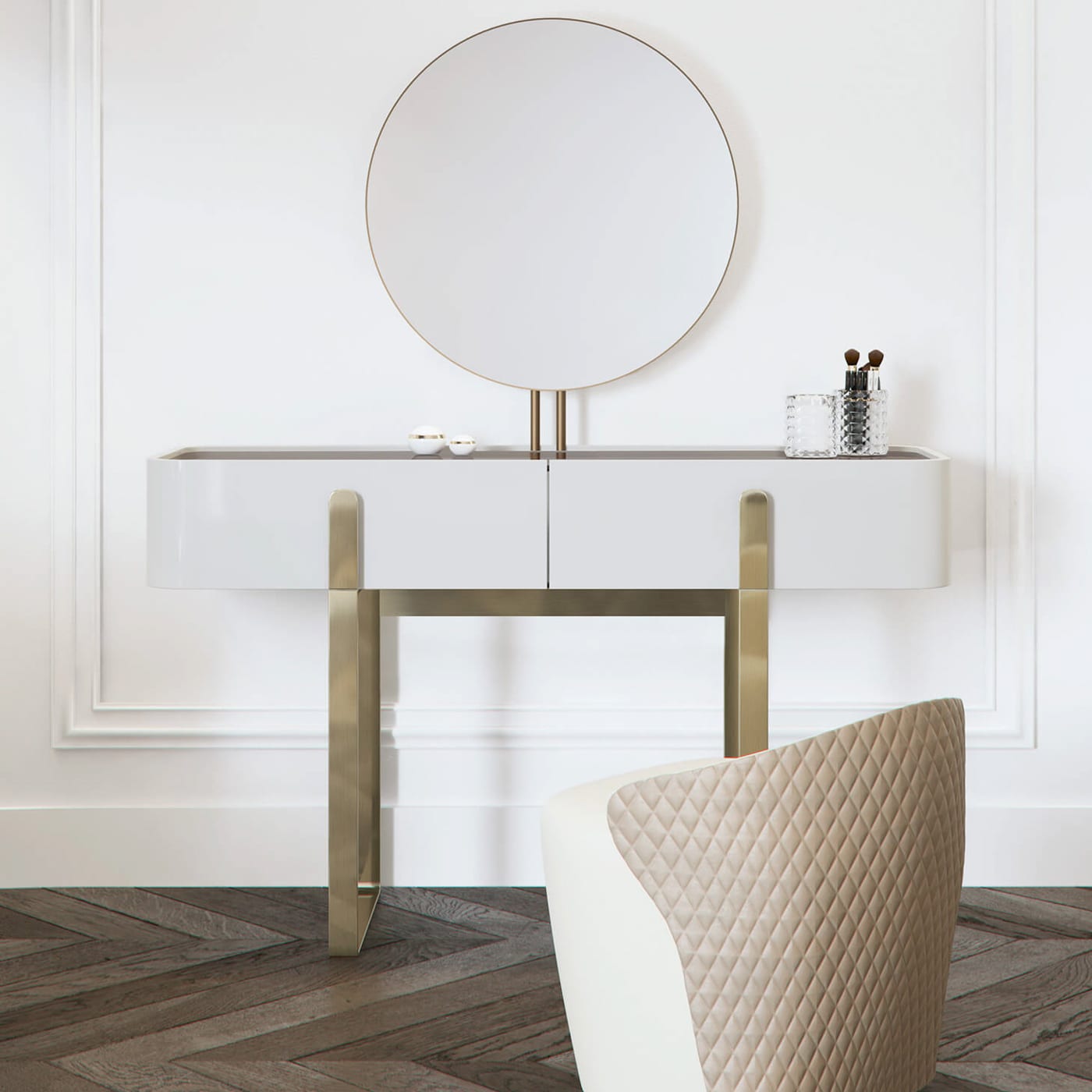 The chair can be upholstered in fabric or leather, depending on the project and the room. In textiles, it reads relaxed and approachable. In leather, it shifts toward a cleaner, more tailored mood. Either way, the materials are chosen to sit naturally with the restrained design language.