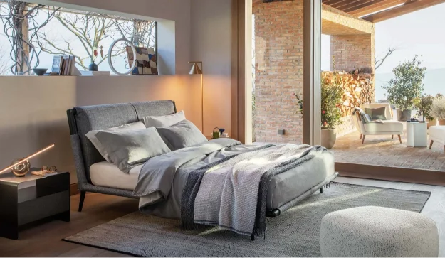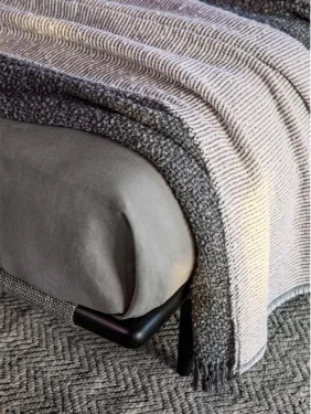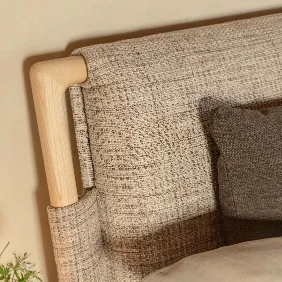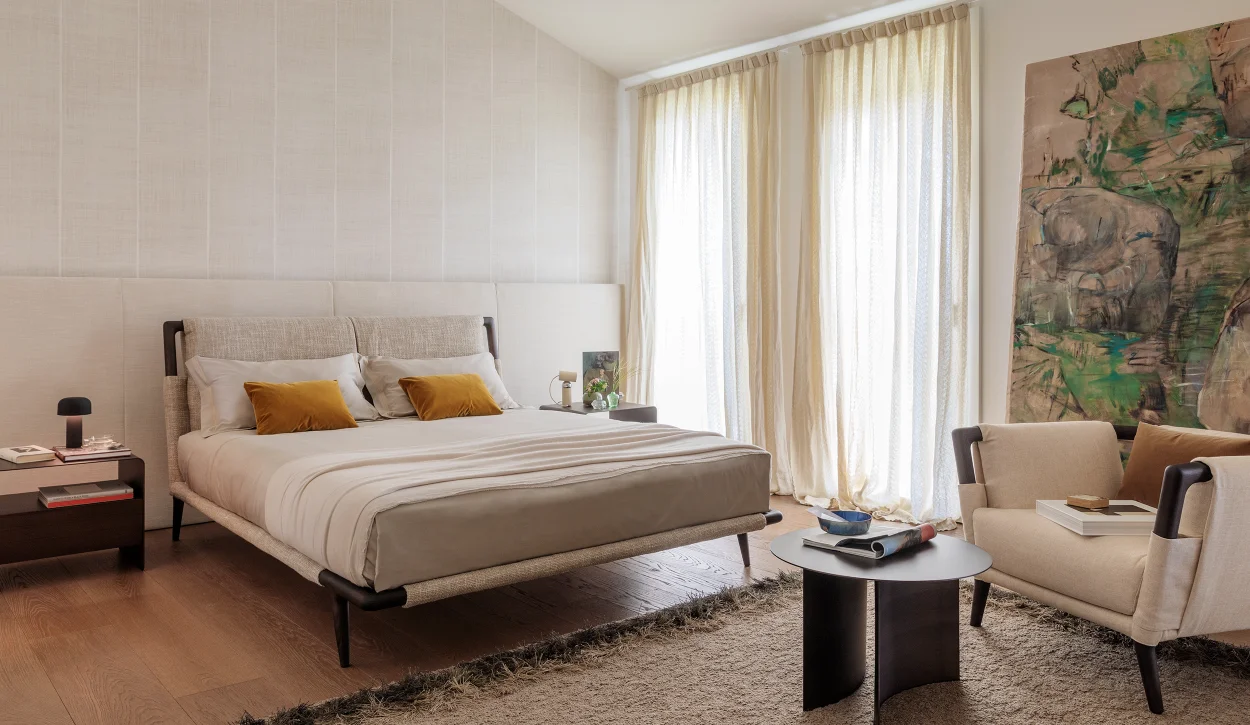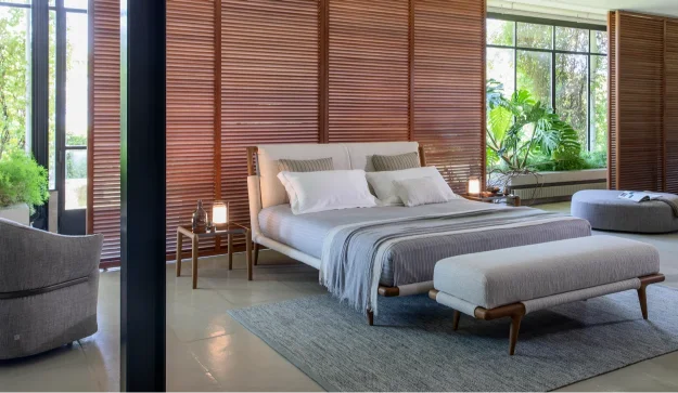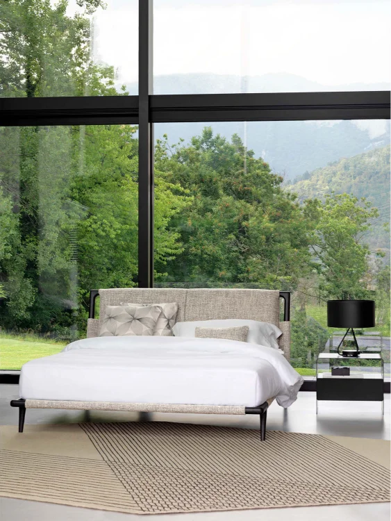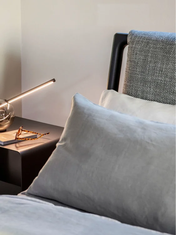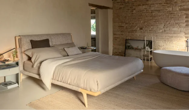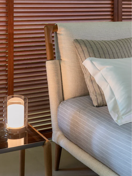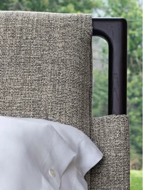 In its natural ash wood version, paired with textured fabric covers and clean-lined accessories, the Gaudi bed embodies a philosophy of peaceful living and elegant simplicity. The use of wood—a living material—combined with carefully selected natural textiles, fosters an inviting atmosphere that encourages harmony with the surrounding environment.