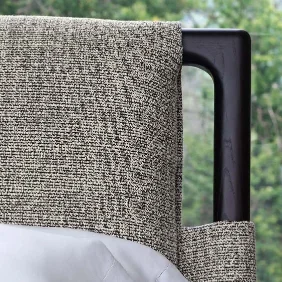 The headboard and footboard are crafted from gently curved wood, providing a sinuous support that enhances the overall elegance of the bed. The wooden structure is available in a variety of finishes, including natural, coffee-stained, and black-stained ash, as well as natural and coffee-stained iroko, allowing for personalization to suit any decor style.
