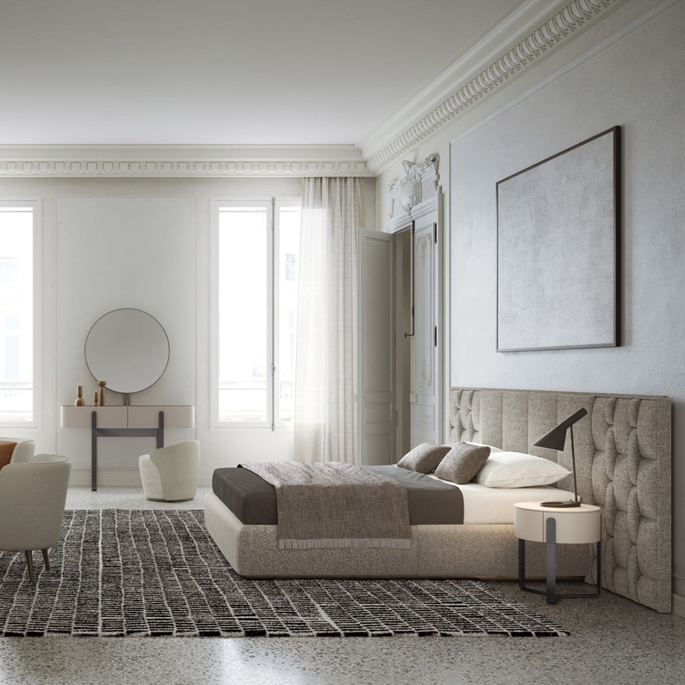 The headboard is padded with undeformable polyurethane foam in different densities, so the structure stays true over time. Finishes in leather or fabric give designers and homeowners a clear choice in tone and texture, from more tailored to more relaxed. Capital keeps the material story clear and honest, with no unnecessary complications.