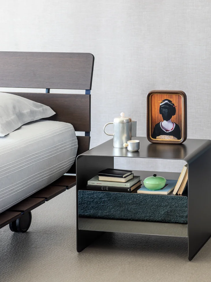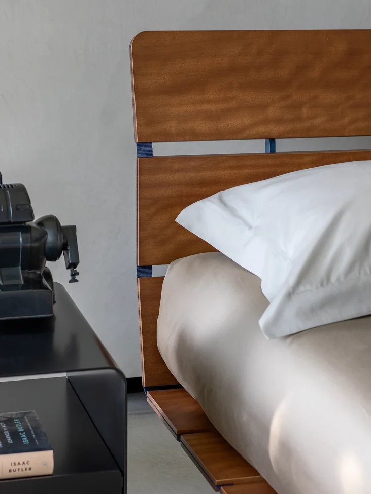 Designed with “design lovers” in mind, Tadao is particularly well-suited for creating a young and informal atmosphere. Its clean lines and minimalist form lend themselves to a variety of styles, from modern to eclectic. The bed is available in a single version, with two different widths to accommodate diverse spatial needs, making it versatile enough for various bedroom layouts.
