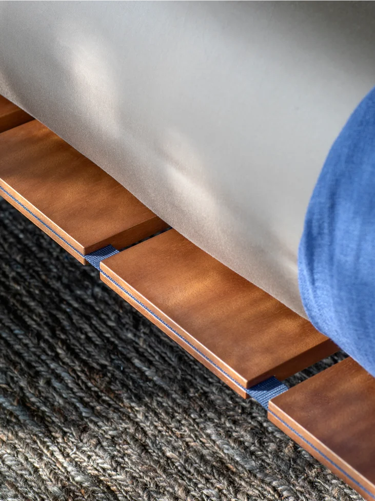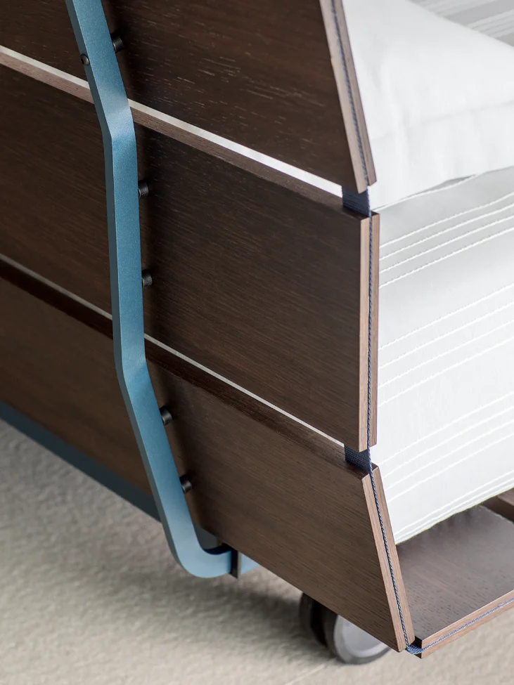 The Tadao Single Bed, a creation of renowned designer Vico Magistretti in 1993, presents a refreshing take on contemporary bedroom design. By exposing the slats that are usually hidden away, Tadao transforms a conventional element of a bed into a striking feature, emphasizing functionality as a primary aspect of its aesthetic. This thoughtful design choice not only showcases the craftsmanship behind the bed but also enhances its overall visual appeal, making it a standout piece in any bedroom.