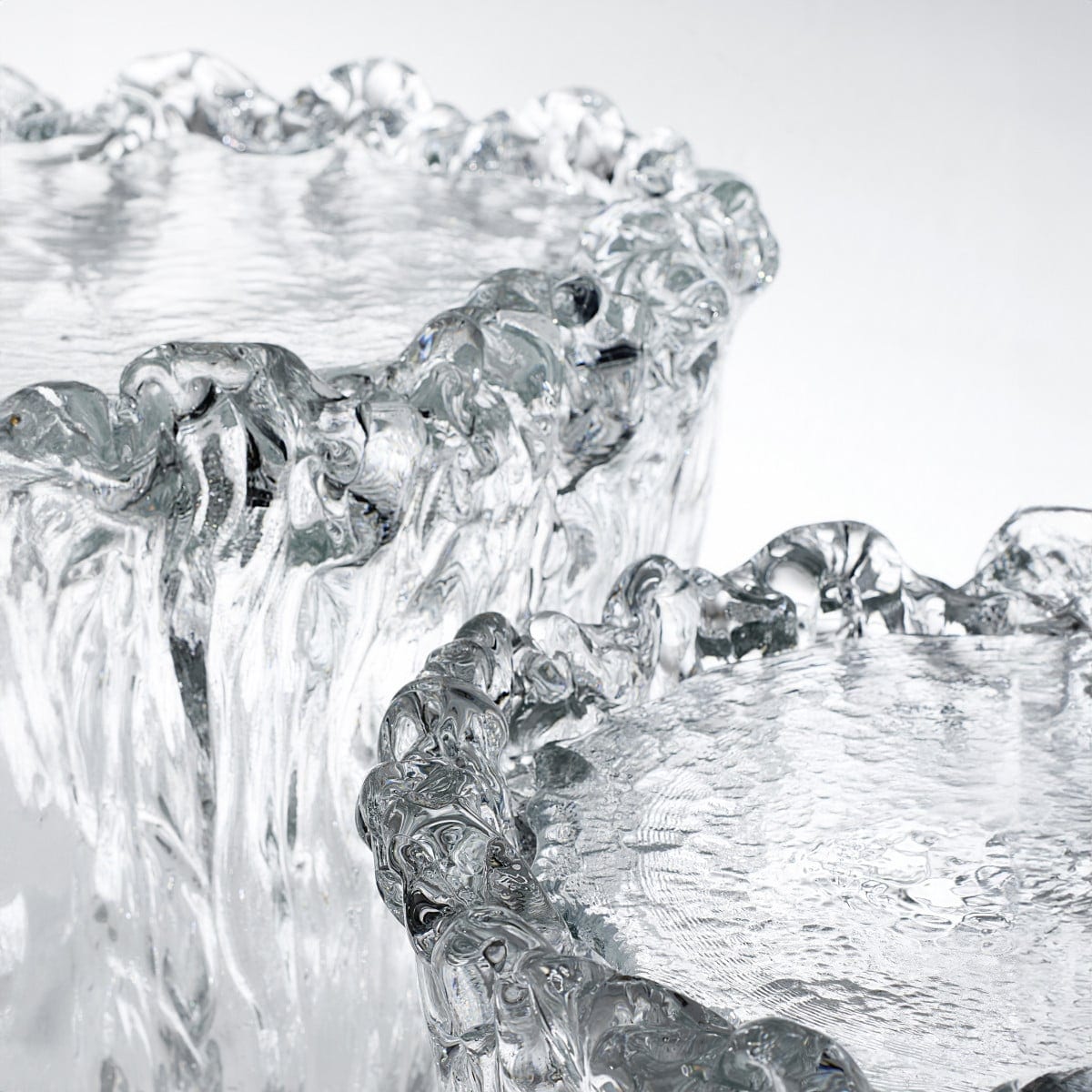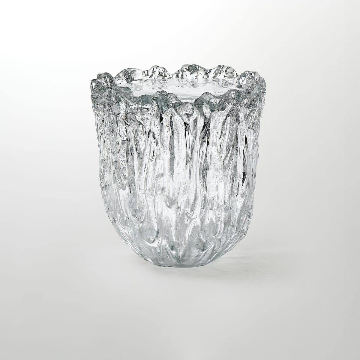 The base is made from Murano poured glass, then hand shaped and chiseled using highly tuned processing techniques. That handwork matters here. It creates edges and contours that feel intentional, not overly polished, and it keeps the glass from looking flat or generic.