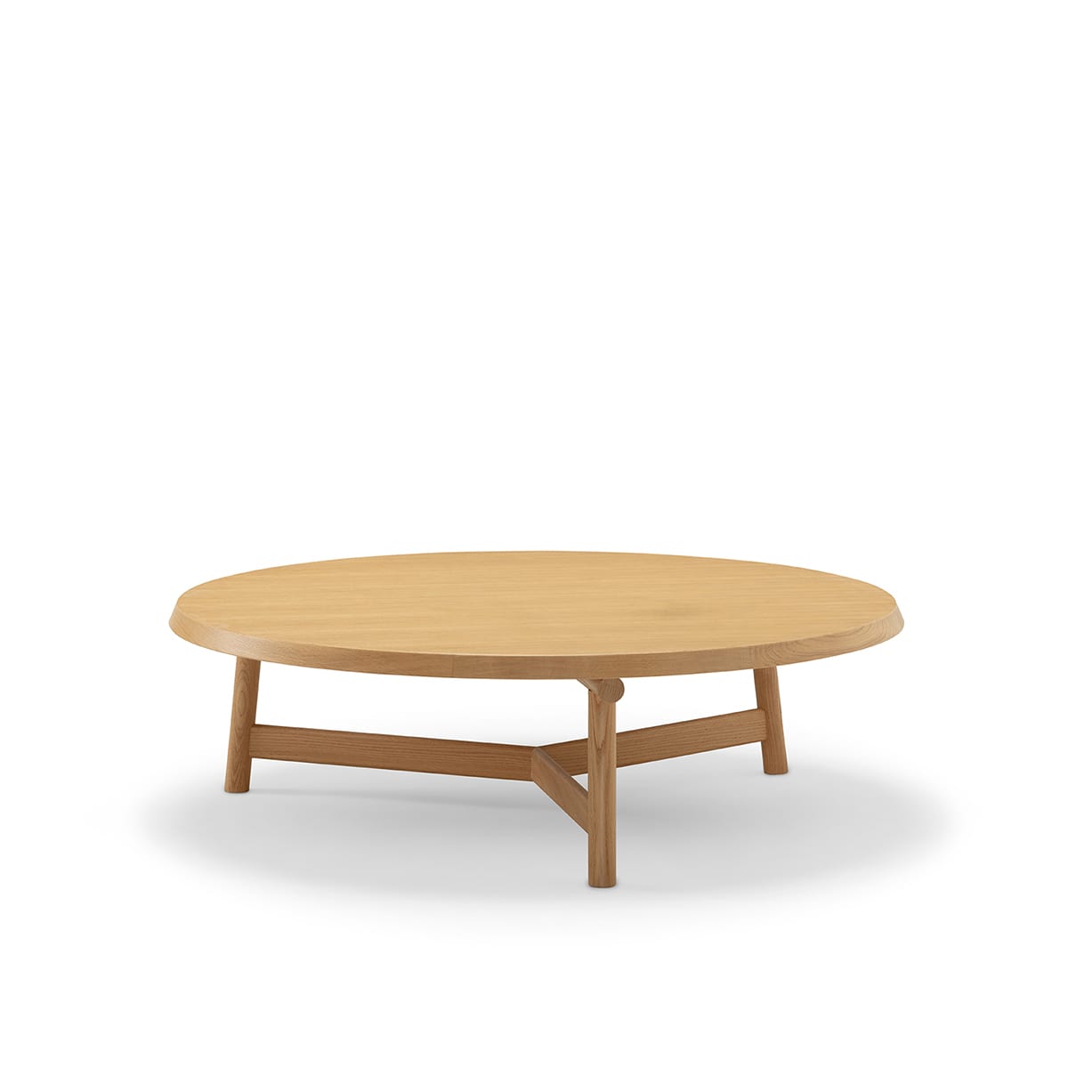 Hydra was designed as a central living element. It sits naturally alongside sofas and lounge seating, close enough to be useful but never in the way. The articulated base provides real stability across all sizes, which matters when you are setting down drinks or books on a daily basis. And with six formats to choose from, there is room to pair a larger surface for the main seating area with a smaller piece as a side accent.