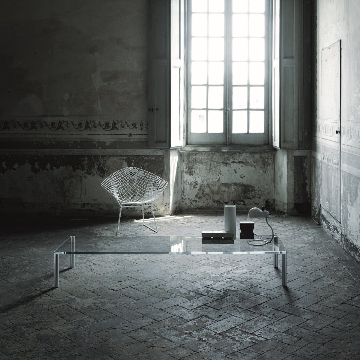 This collection is comfortable in the way good tables should be: easy to live around. The transparent top opens up sightlines, so larger sizes feel lighter in the room. But the structure still reads solid, thanks to the repeated rhythm of the cylindrical feet.