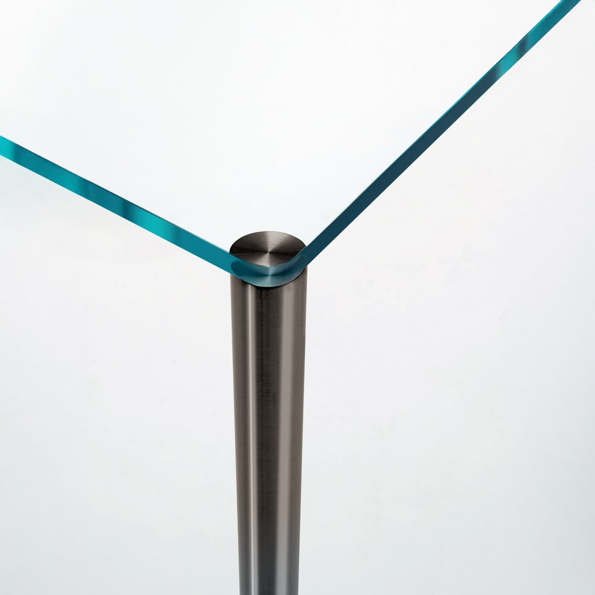 The legs are fixed to plates that are glued to the underside of the glass top. It’s a clean solution that keeps hardware out of sight and lets the materials do the talking. glasitalia also offers custom-made options for projects that need a specific fit.