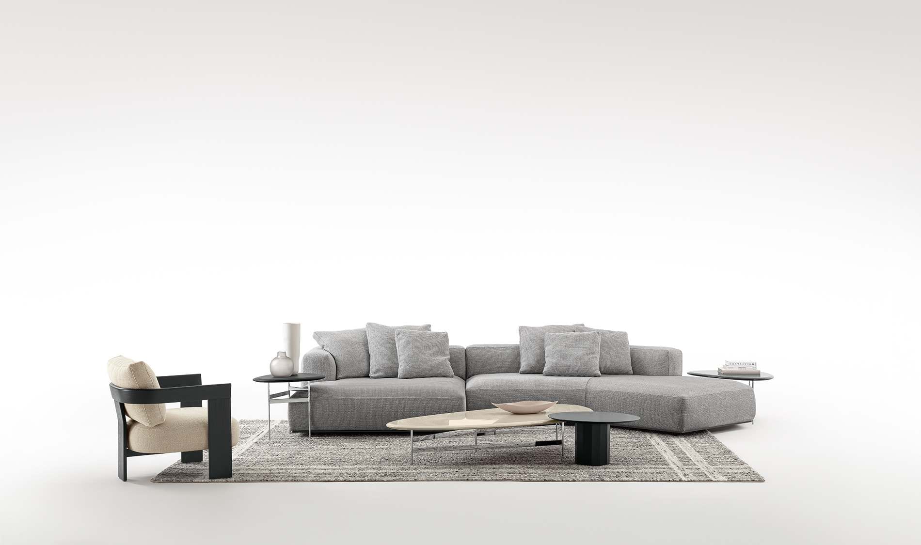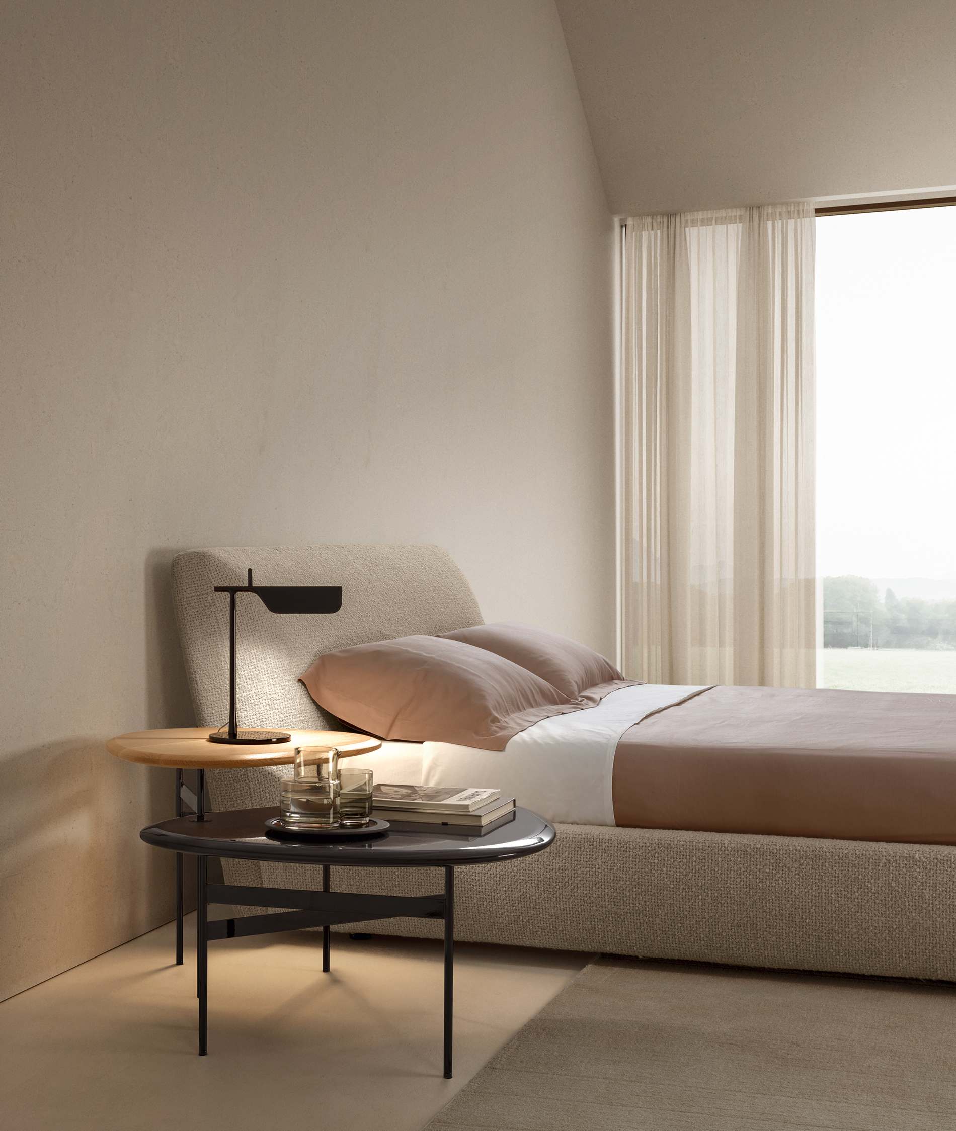 The Mick Coffee Table by Talenti is built around a simple tension: visual lightness against structural solidity. The softly shaped tabletop sits on a bold metal base that does most of the talking. It reads as graphic and contemporary without trying too hard. The base is really the defining feature here — sculptural enough to hold attention, restrained enough to live comfortably alongside other pieces.