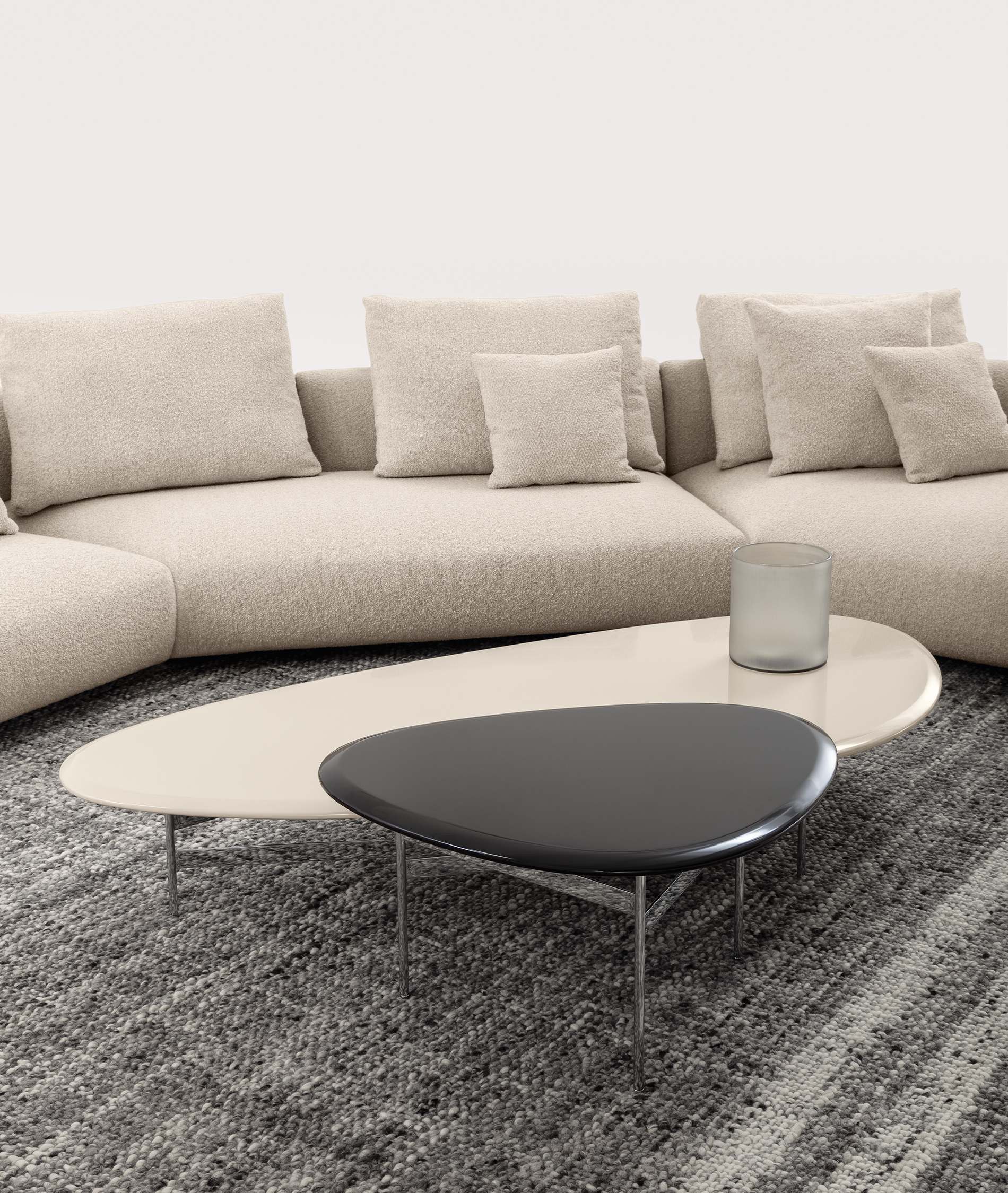 This is a coffee table designed to sit naturally alongside sofas and lounge seating. It provides a functional surface — books, drinks, a lamp — but it also carries real visual energy. The kind of piece that shapes a living area without overwhelming it. Its slightly irreverent attitude keeps things from feeling too composed or too safe.