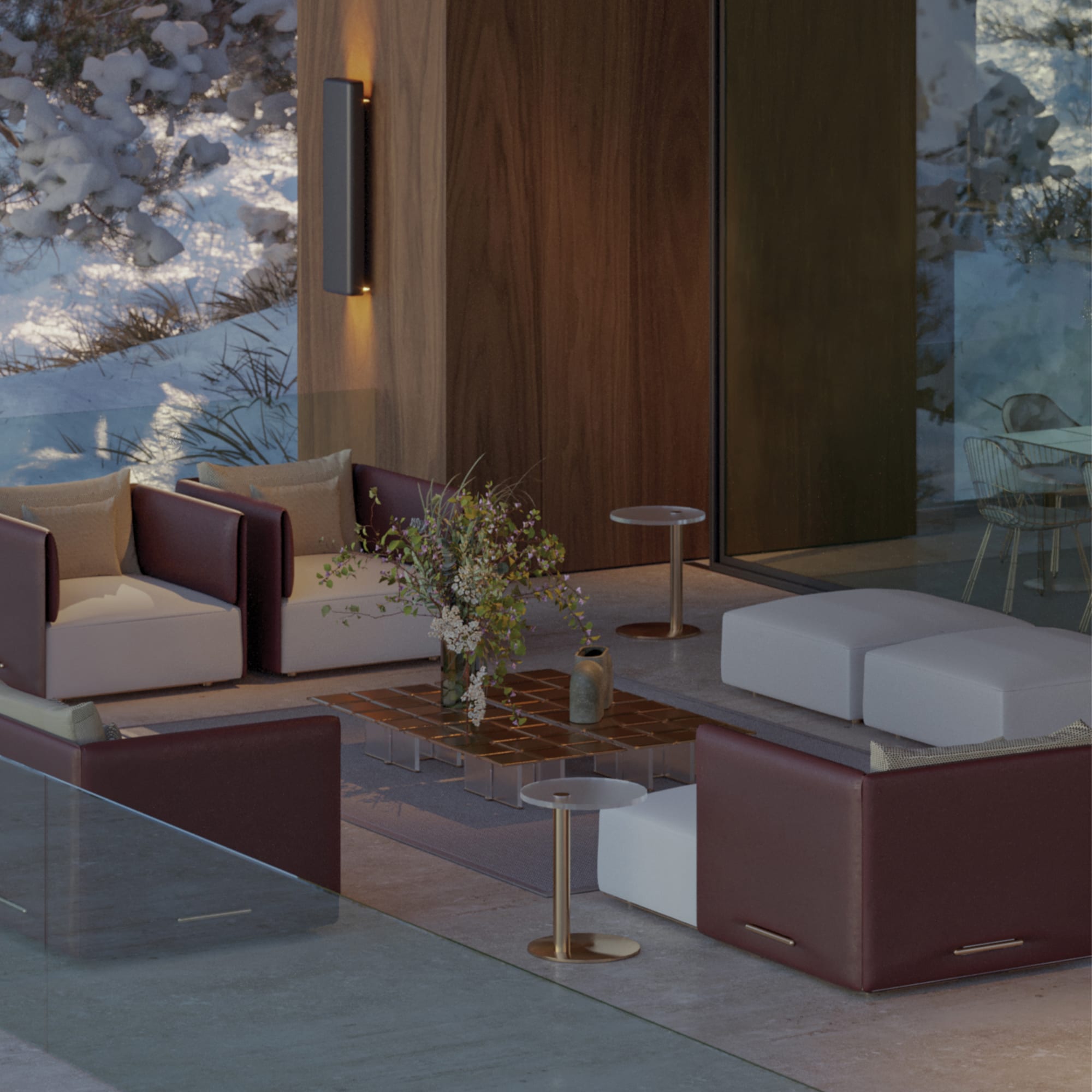It’s also easy to pair. With other pieces from the Mo line, it helps create a cohesive composition. But it can also stand alone when the goal is a single, modern anchor that doesn’t overwhelm.