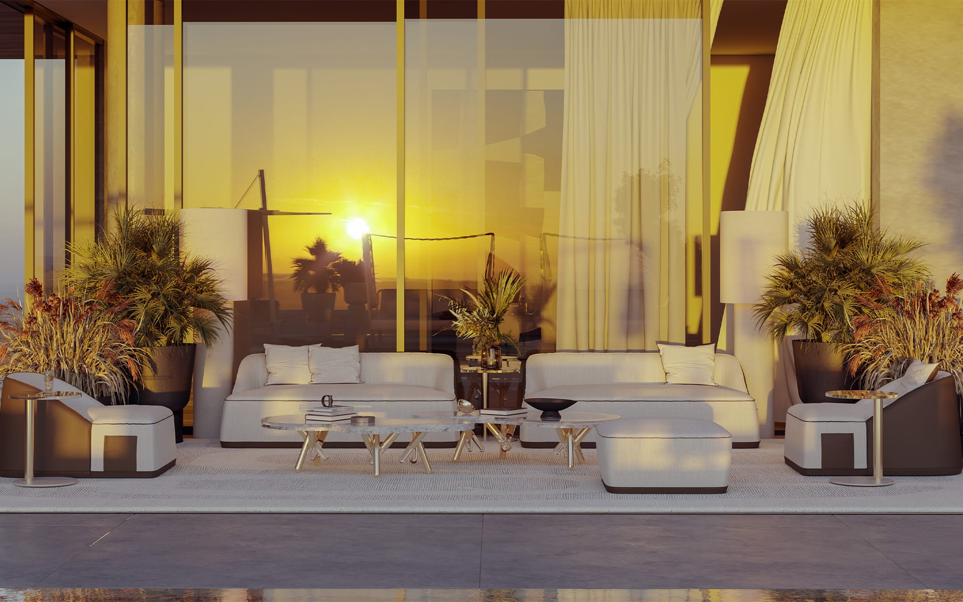 Designed for outdoor spaces, the piece works best where light can play through it. It suits a terrace conversation set, a poolside lounge, or a covered patio where materials can be appreciated up close. The Ness Coffee Table also pairs well with mixed finishes nearby, since it already balances stone, acrylic, and metal.