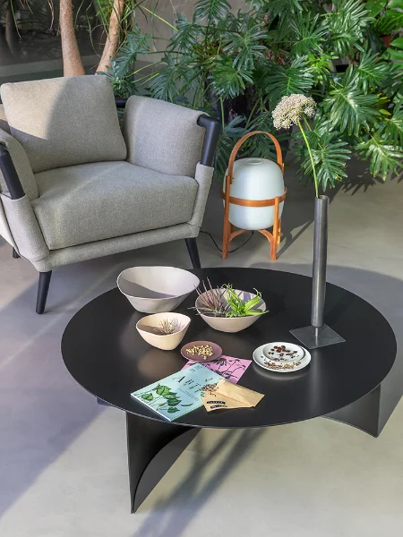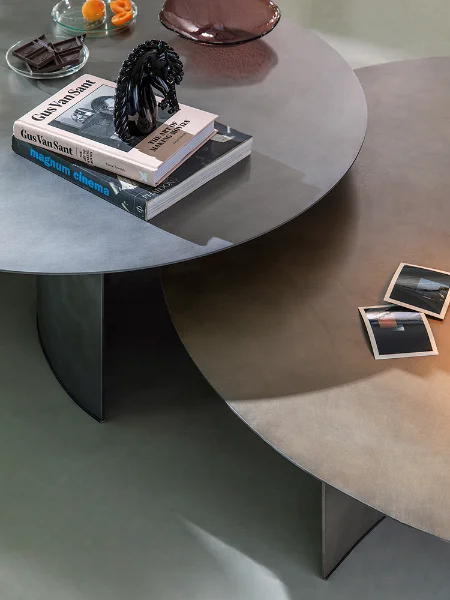 The Pierre Small Tables By Flou collection, crafted by Design Studio Contromano in 2020, embodies elegance and versatility, perfectly suited for outdoor environments. These metal round coffee tables are available in a range of sizes and finishes anodic bronze, matte burnished, white, black, and greige allowing them to complement any outdoor aesthetic. Each table’s lightweight design and stylish appearance make them a delightful addition to gardens, patios, or balconies.