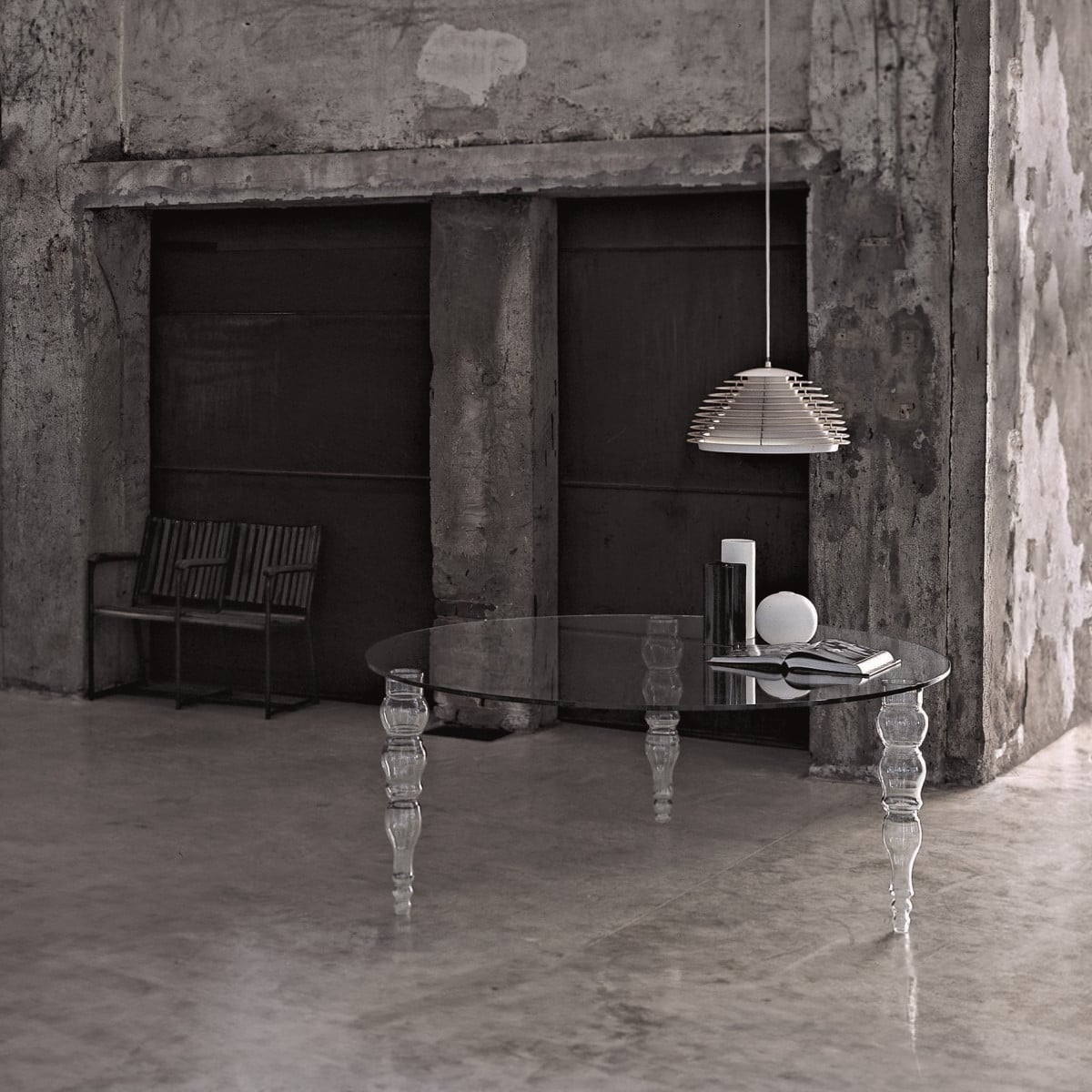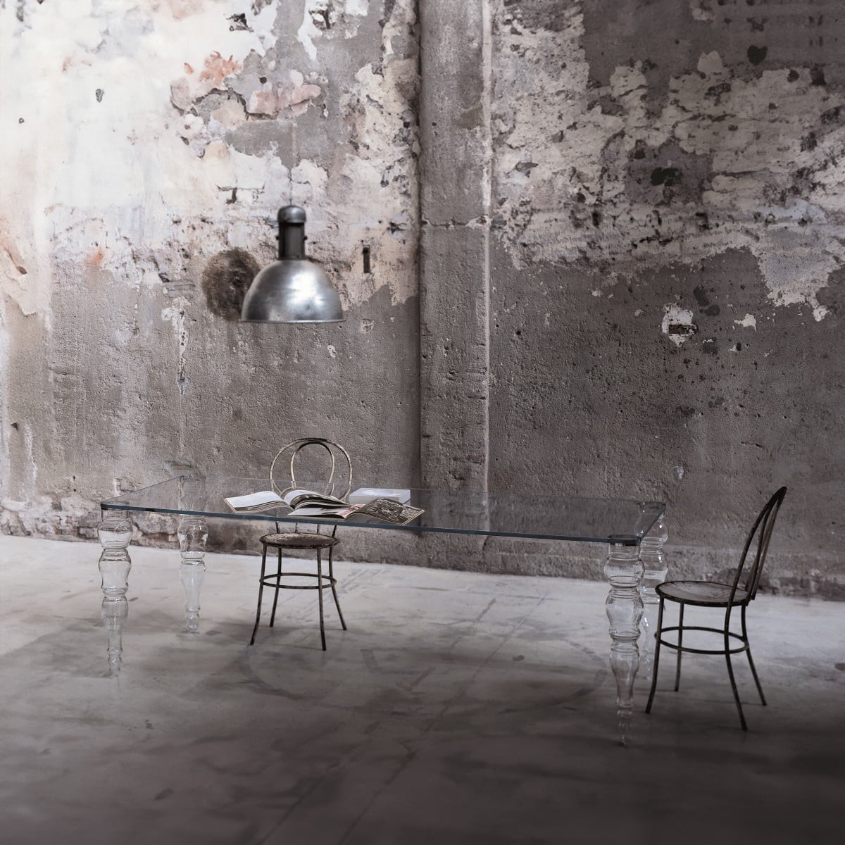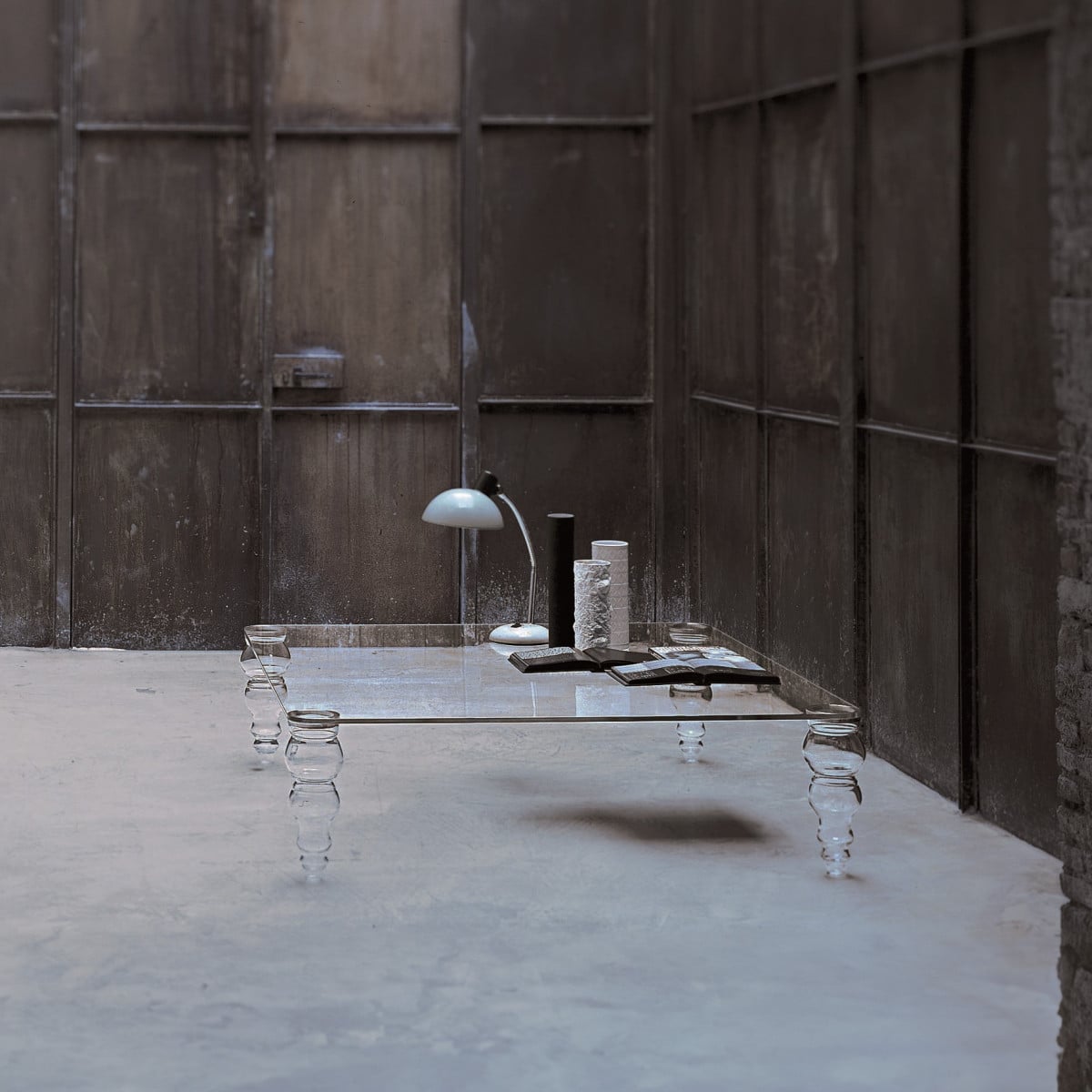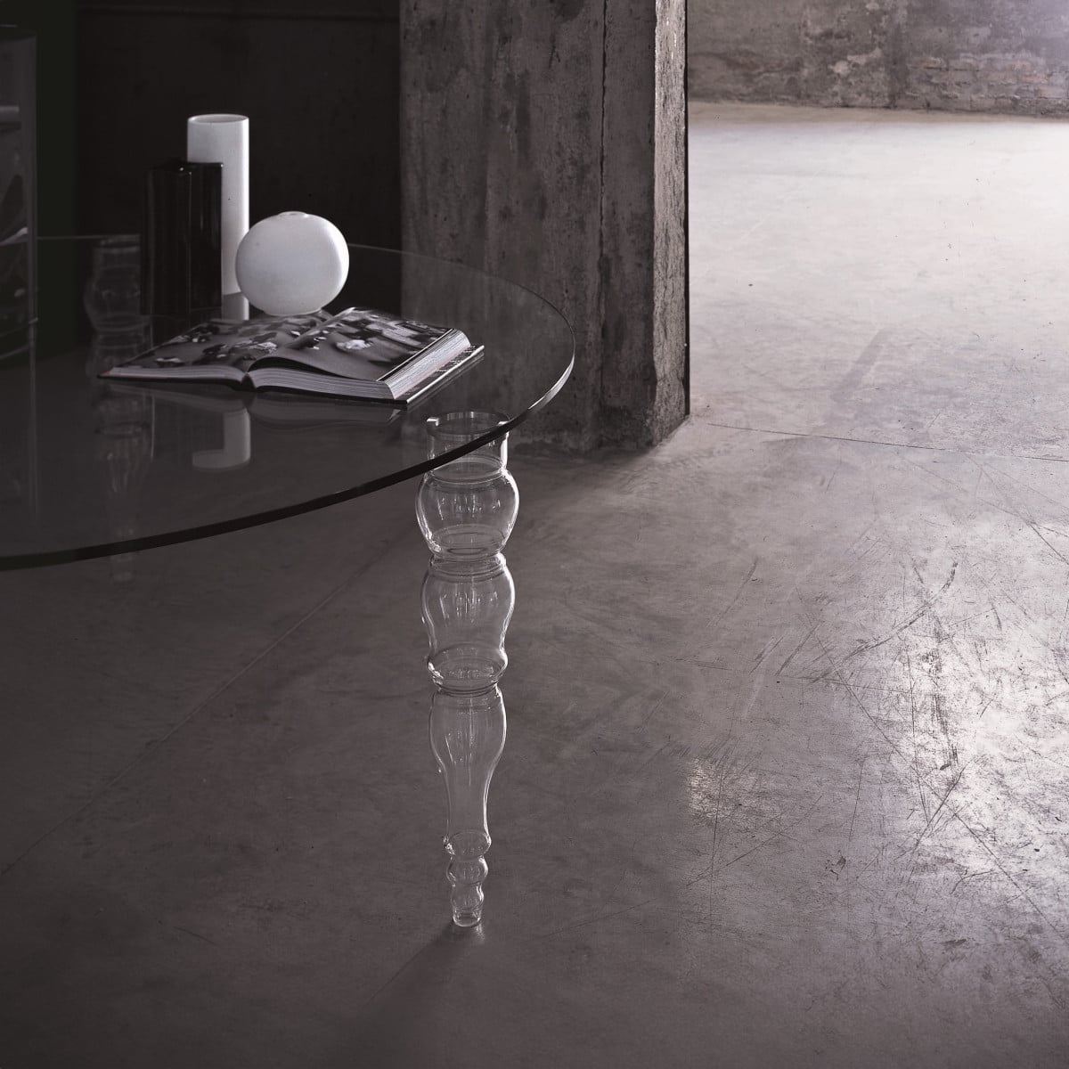 Everything is glass, yet the construction doesn’t read fragile. The contrast between the planar top and the sculpted feet is the point, and it’s handled with precision. Glasitalia keeps the details controlled, so edges and reflections feel intentional, not busy.