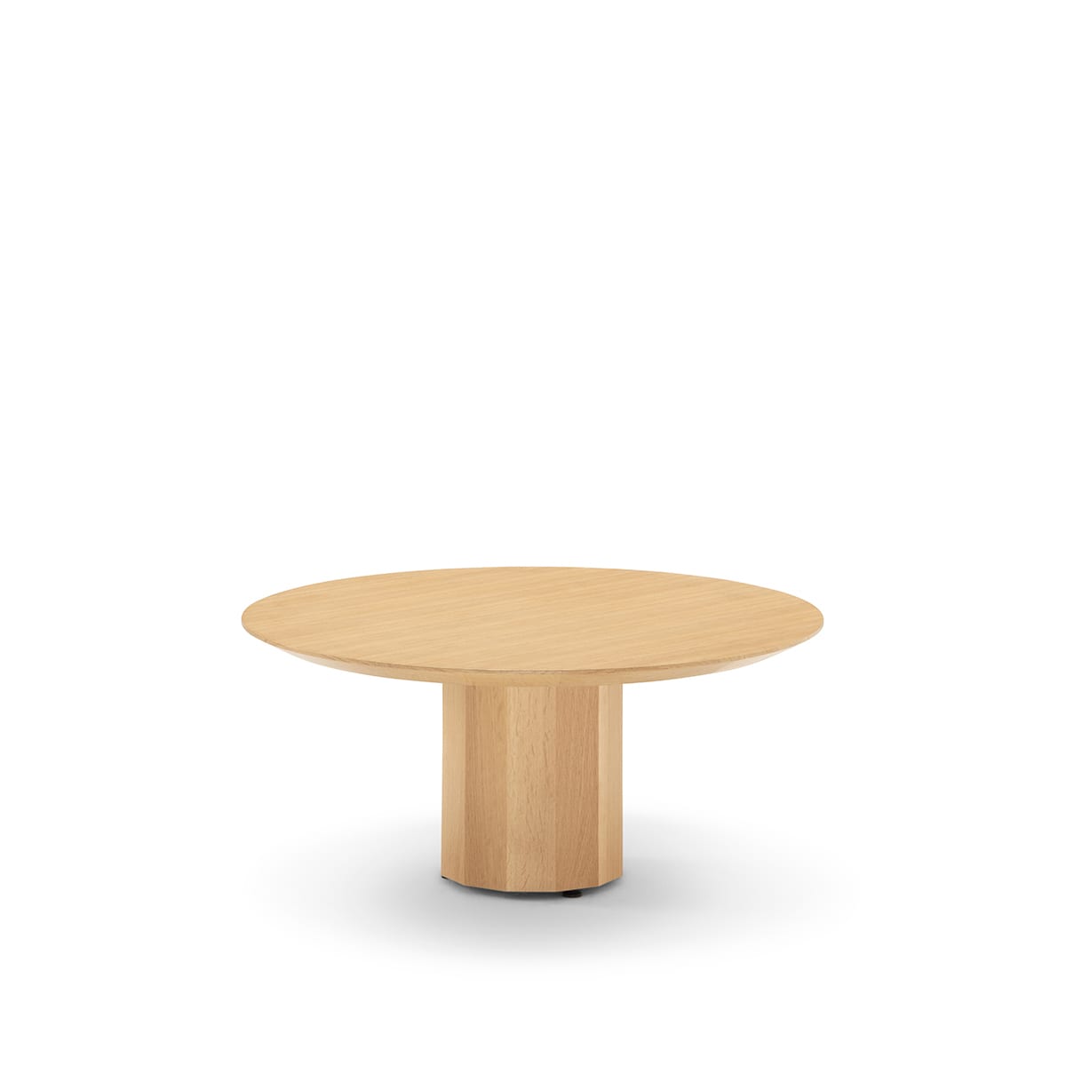 This is a coffee table designed to sit comfortably alongside sofas and lounge seating without dominating. It has presence, but it doesn’t shout. The proportions are generous enough to be functional — space for books, a tray, a drink — while the central pedestal base keeps sightlines open and legroom clear. It works in the middle of a conversation area the way a good coffee table should: effortlessly.