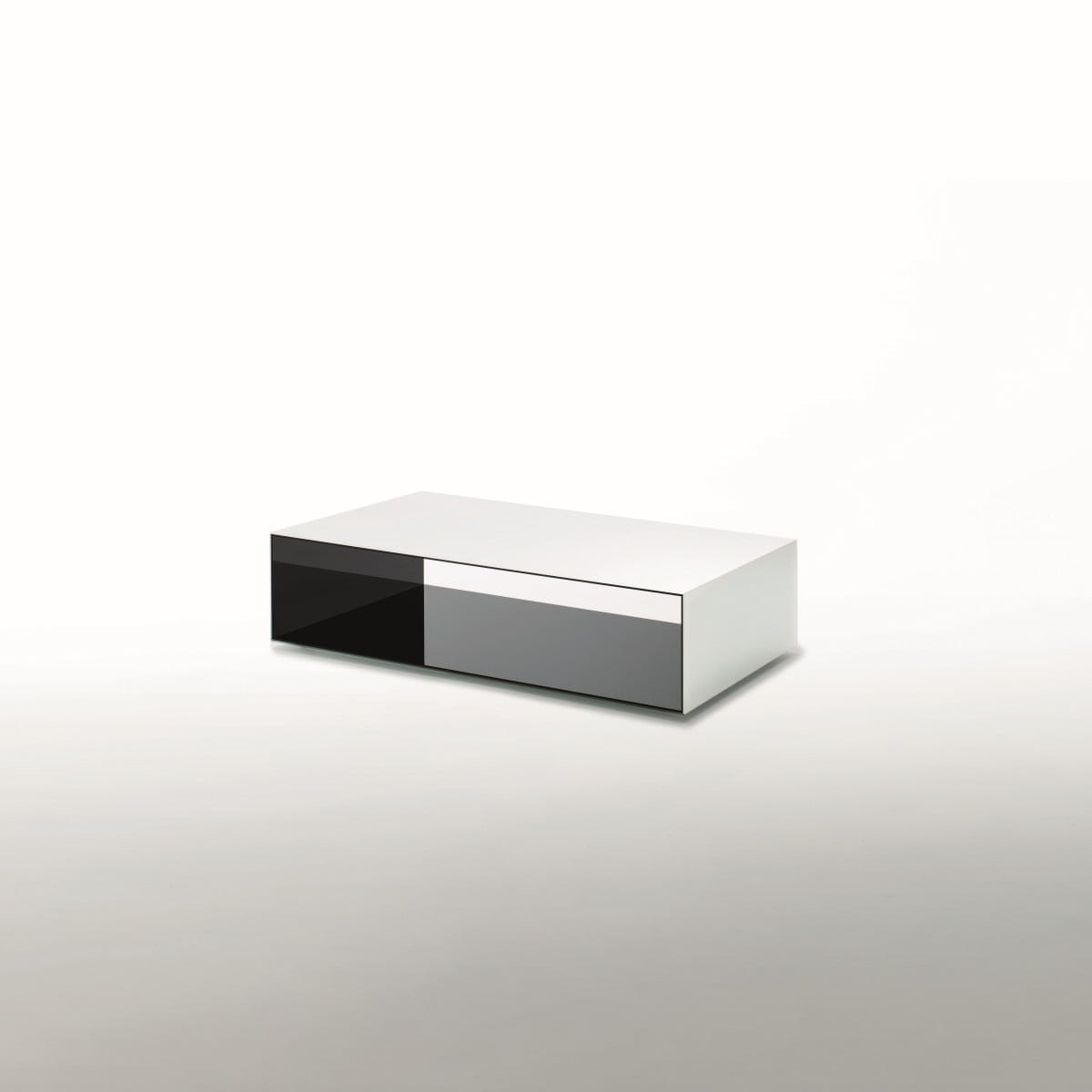 Coupled laminated glass is chosen for resilience, and the lacquered finish gives the color depth that holds its presence over time. The aluminium feet are small but purposeful, keeping the table stable and visually crisp at floor level.