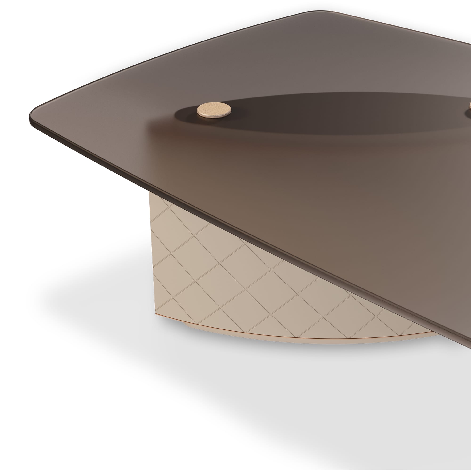 In the standard version, the top is finished in outdoor marble, chosen for open-air performance. Underneath, the structure is lacquered stainless steel, paired with plated stainless steel details. The contrast is subtle but clear: a grounded, architectural base with precise metallic accents.