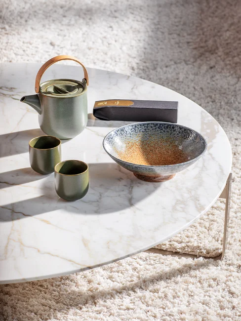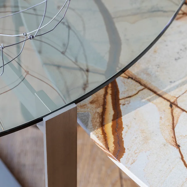 One of the standout features of the Yari collection is its beautifully beveled tops, which are available in two luxurious finishes: 8 mm thick bronze glass and 20 mm thick marble. The choice between these materials allows you to customize the look of your space, whether you prefer the sleek shine of glass or the timeless elegance of marble. This variety not only enhances the table’s visual appeal but also offers a diverse range of textures that can harmonize with various decor styles.