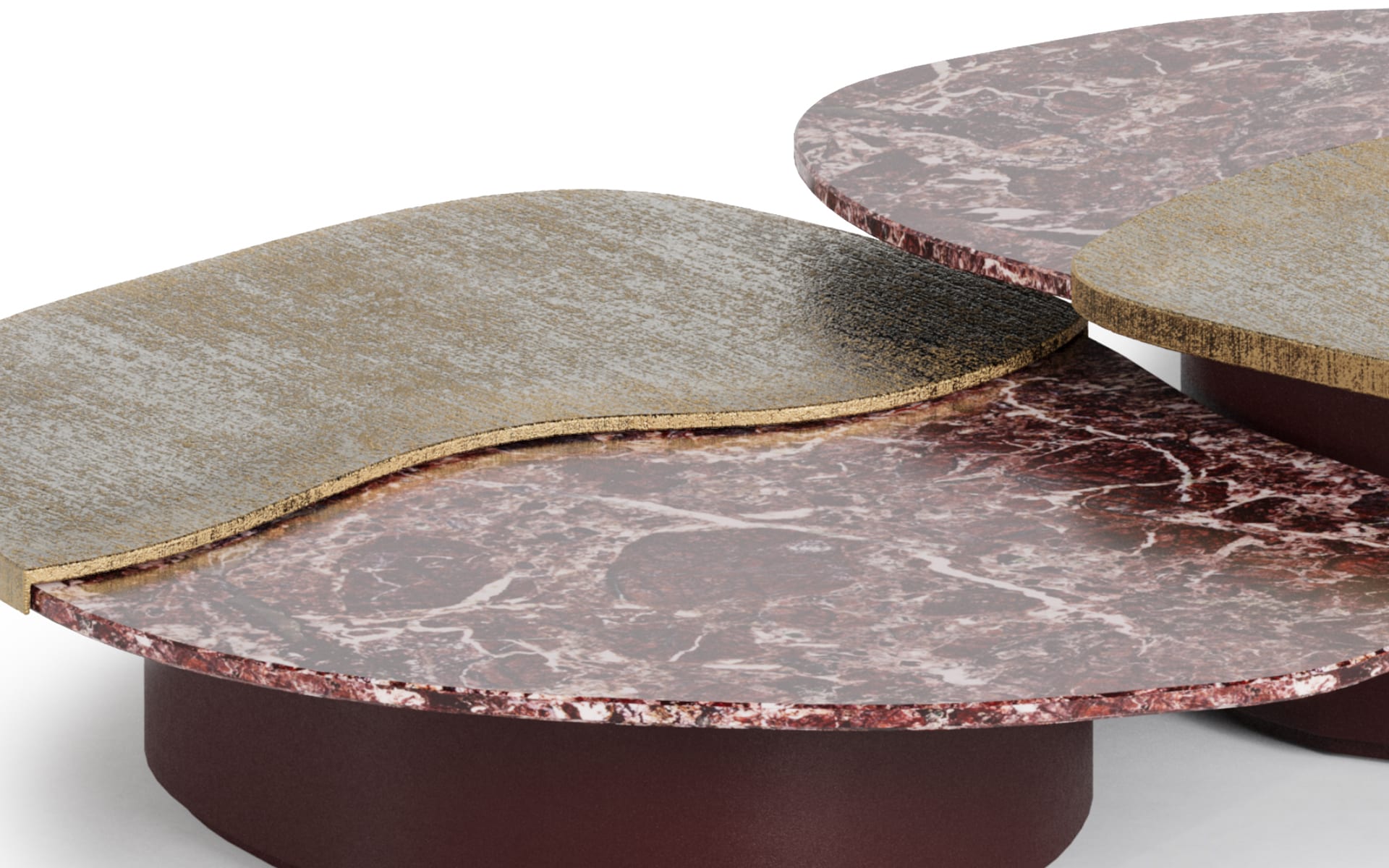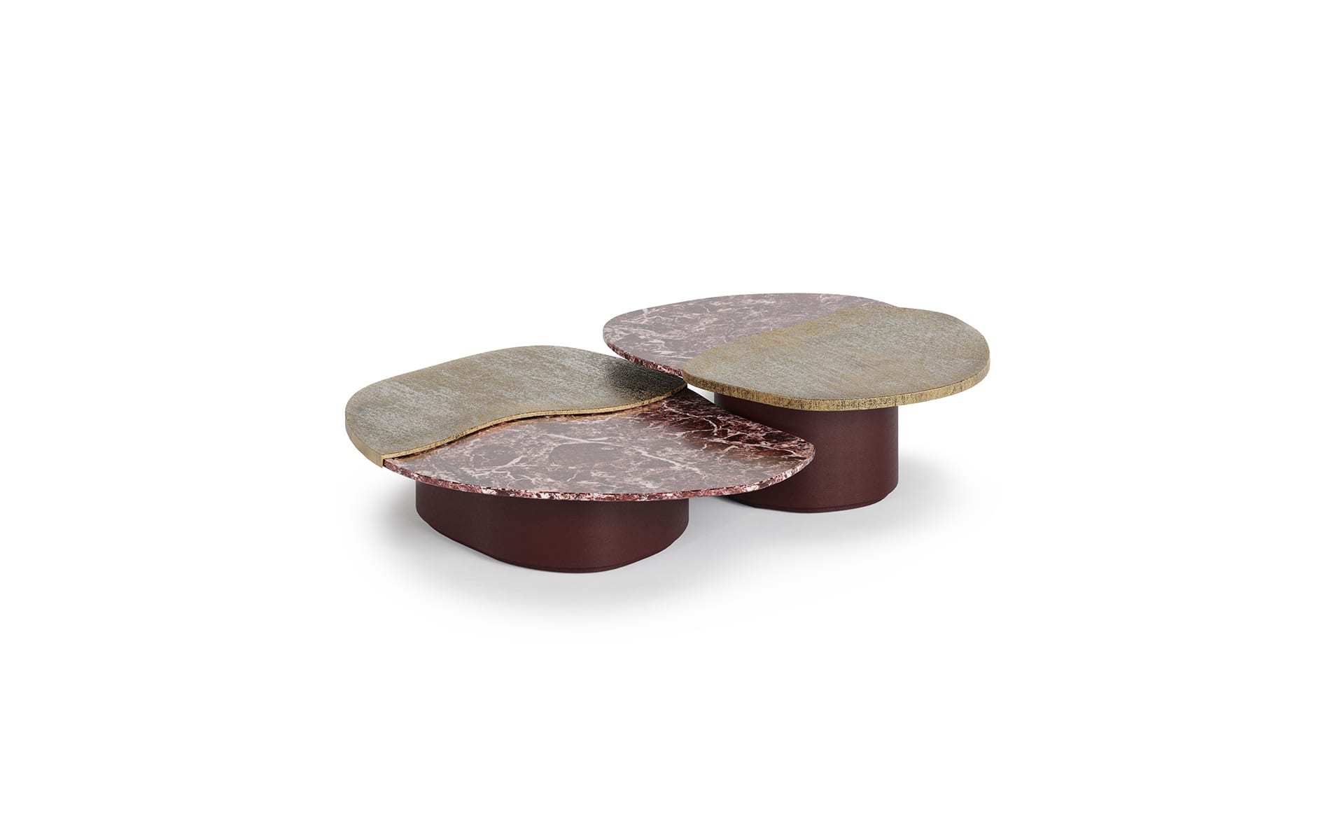 The Zaya Coffee Table reads as one sculptural idea, expressed in two pieces. The tops are organic and slightly irregular, combining marble with casted aluminum in a way that feels intentional but not precious. It’s the kind of shape that brings movement to a room without taking it over. And because the two tables are designed to complement and connect, they can sit close as a set or pull apart to follow the way a space is used.