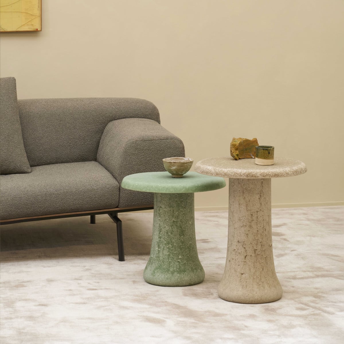 That range makes it easy to keep a consistent look across different rooms. A smaller piece can sit quietly beside a seating area, while larger tops hold a dining setting with the same material presence. And because the color is always slightly variable, mixing pieces in the same shade still feels layered.