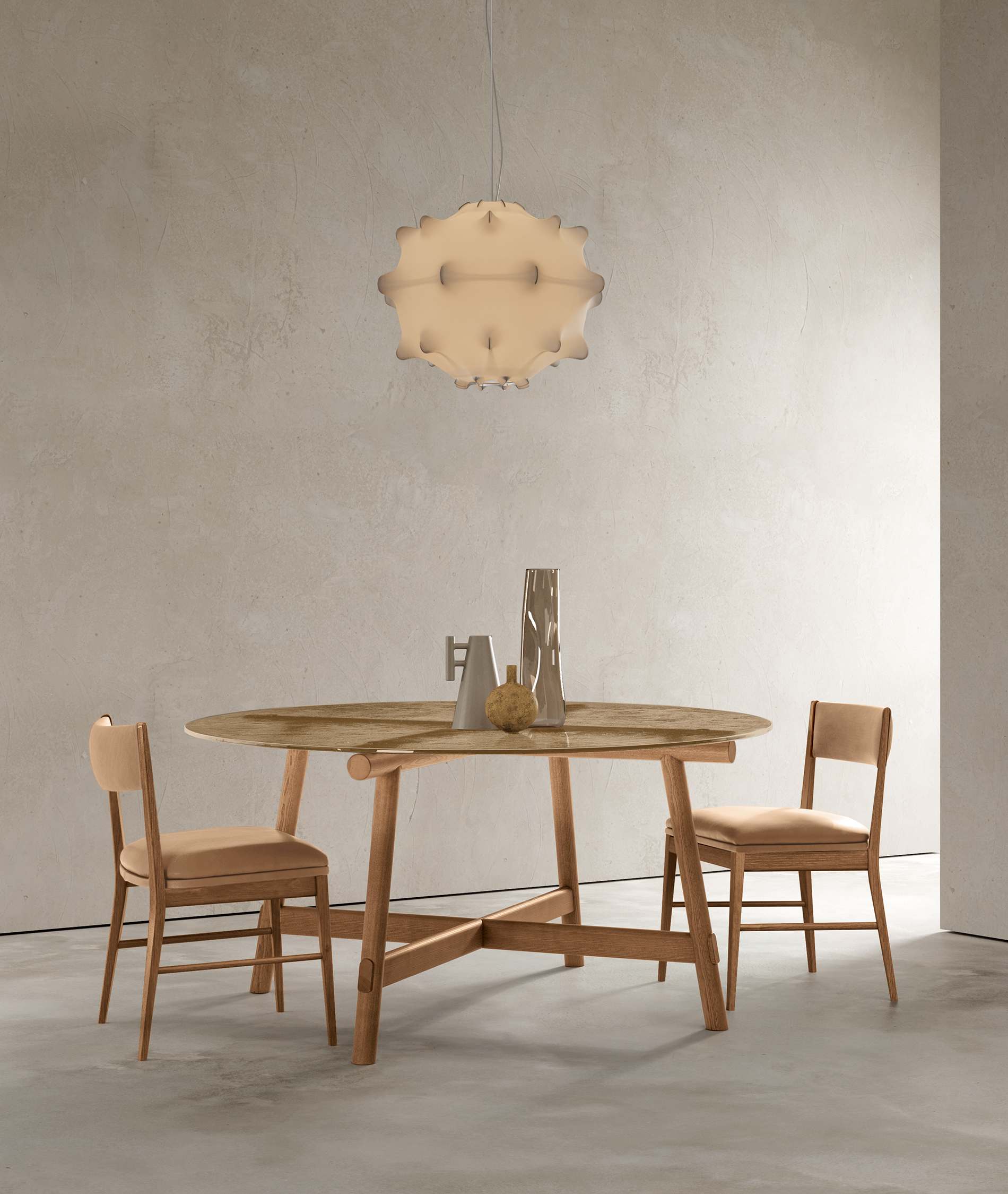 Versatility is built into this chair, not bolted on. Its balanced proportions and understated form let it move between a formal dining room and a more casual kitchen setup without looking out of place. The breadth of finish and upholstery combinations helps too. A Canaletto walnut frame with leather reads very differently from a black lacquer frame in fabric — same chair, entirely different mood.