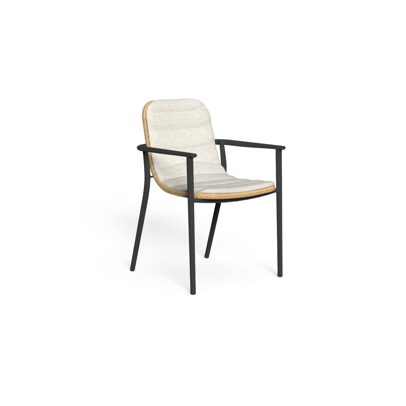 Built for open-air living, the combination of aluminum, wicker weave, and fabric is made to perform outside day after day. The materials resist the usual wear of outdoor dining, maintaining their shape and finish with straightforward care. A protective cover is available for added ease between seasons or after events. With its restrained design and considered construction, the Talenti Bond dining armchair keeps its good looks in regular use, season after season, without demanding attention—except when it catches the eye for all the right reasons.