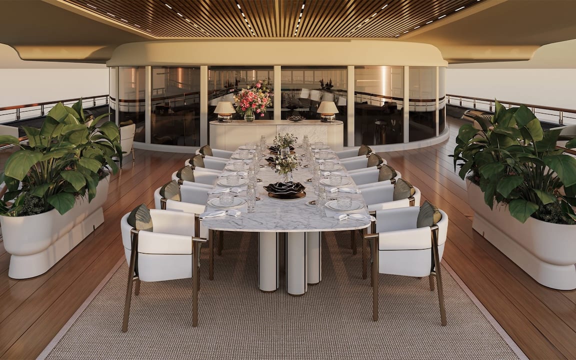 The Céline Dining Chair works best where the setting is already intentional: a covered patio, a city balcony with a view, a poolside dining area that doubles as an evening hangout. It suits stone, concrete, and wood surfaces equally well, because the frame stays visually light.