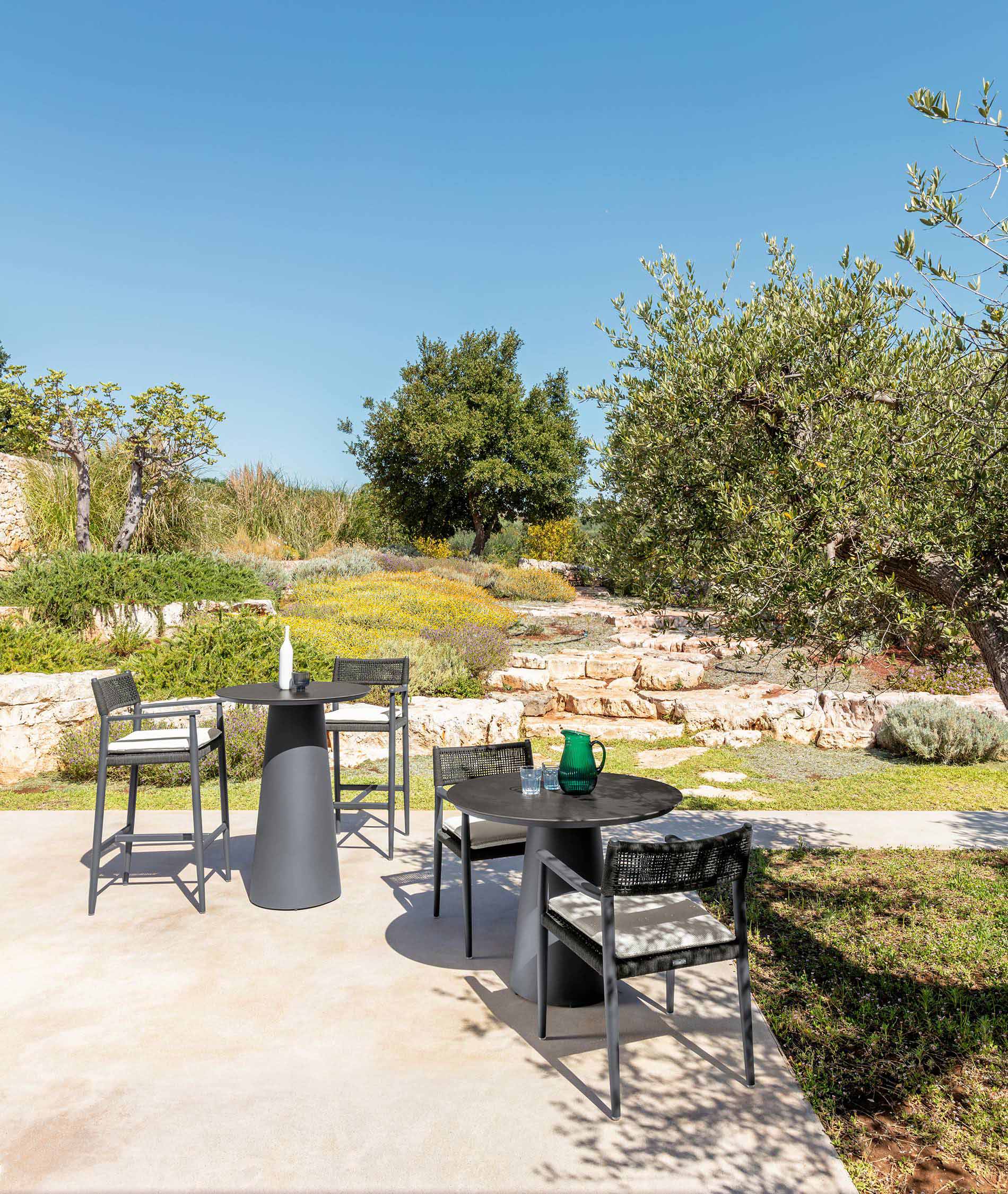 This stool finds its place wherever the conversation gathers—an outdoor bar corner, a poolside counter, or a covered terrace. It pairs well with bar-height counters and mixes easily with other pieces in the Dolcevita//Alu collection for a cohesive look. Use it singly where space is tight or line up a set for a more architectural statement. The Talenti approach favors clarity and ease, and this piece follows suit.
