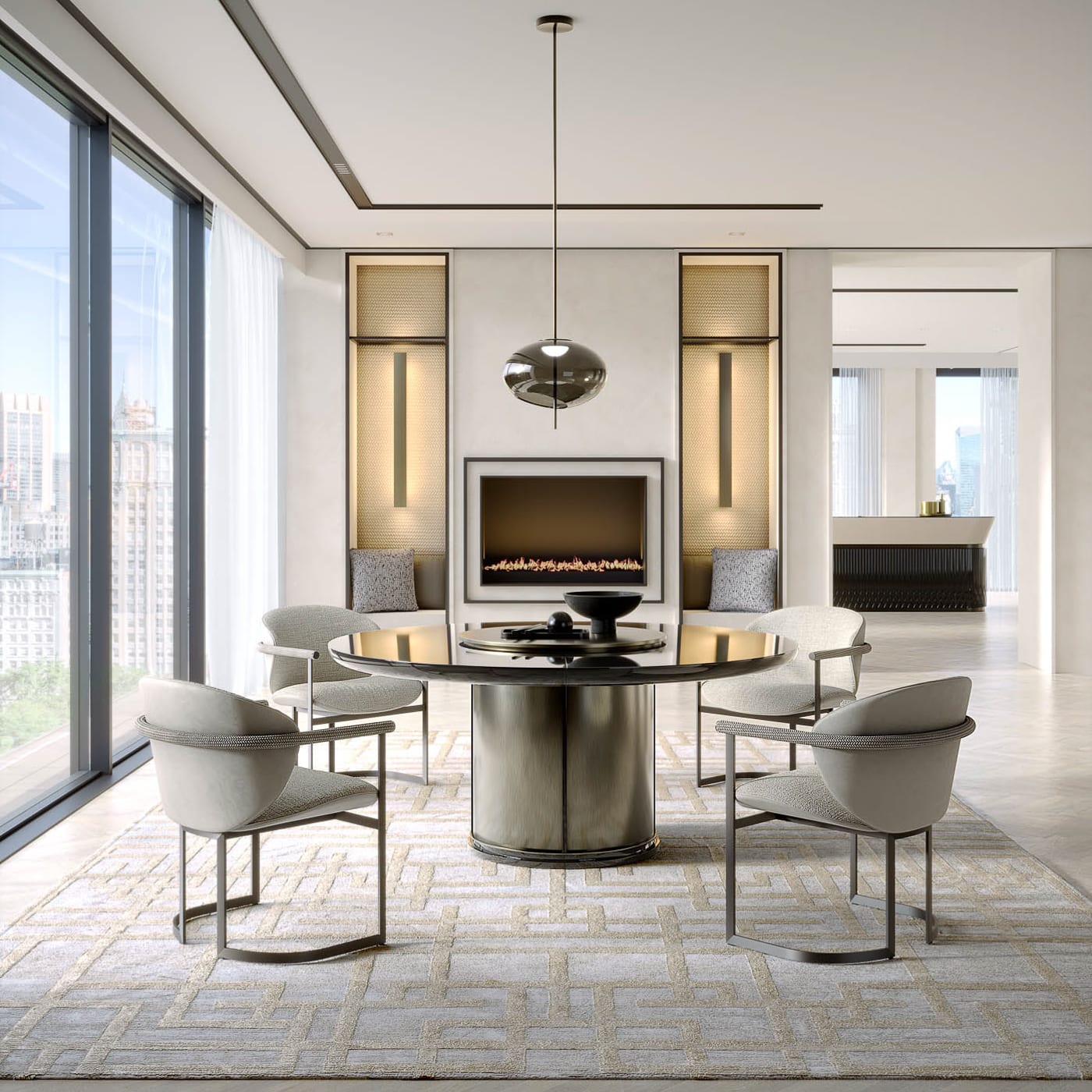 Flora suits interiors where the furniture is expected to work hard but still look composed. Around a dining table, the chair adds a refined note without overwhelming the room. In a private office or meeting space, a small group of Flora chairs signals care in selection, not excess.