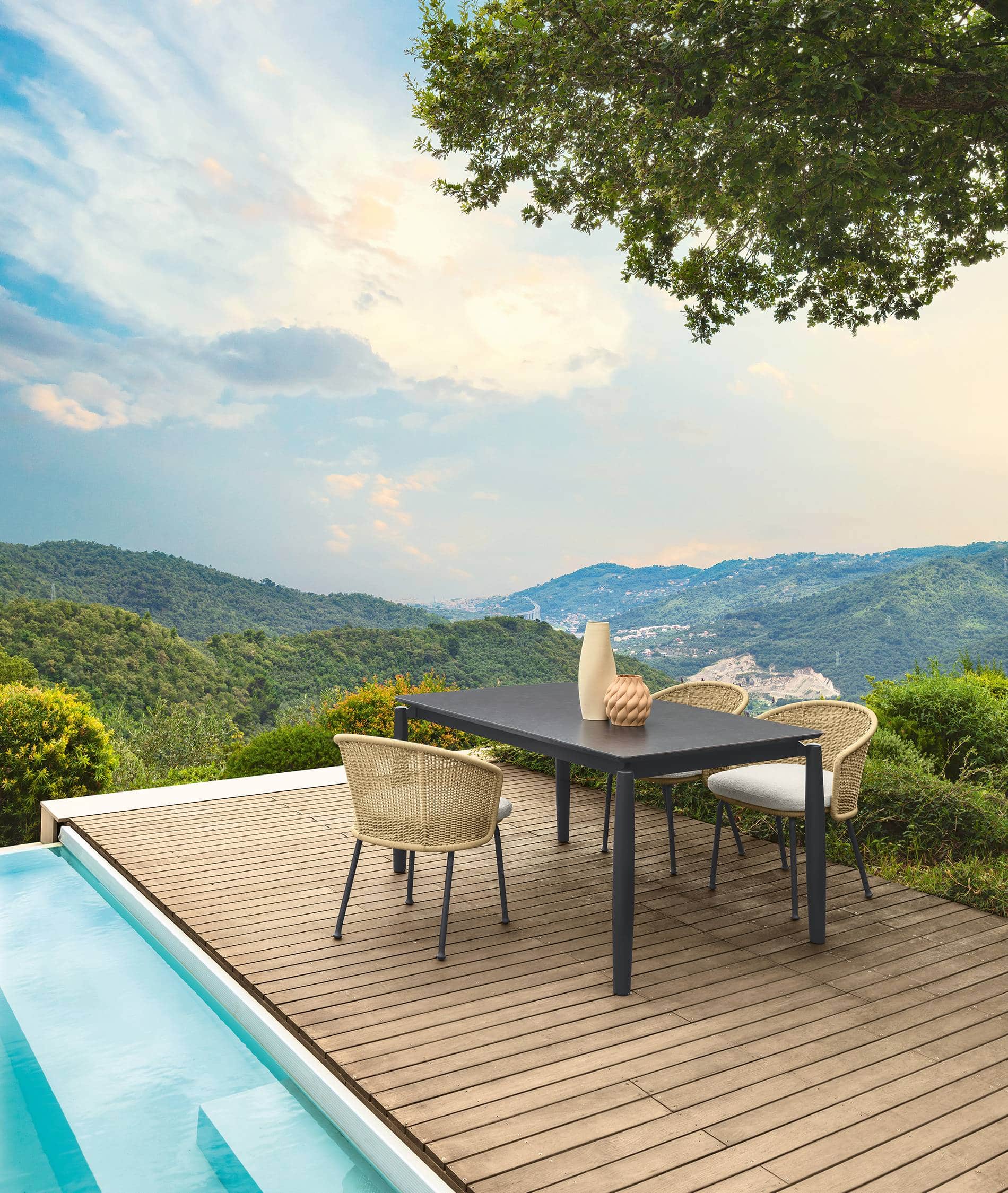The Talenti Nido Dining Armchair brings a quiet confidence to open-air dining. Designed by Ludovica + Roberto Palomba, it draws the eye with a soft, enveloping silhouette and a refined wicker-style weave. The curved back wraps the body without fuss, while the open form keeps the look light around a table. It reads modern, but not stark. Just the right balance for a setting that moves from long lunches to late evenings.