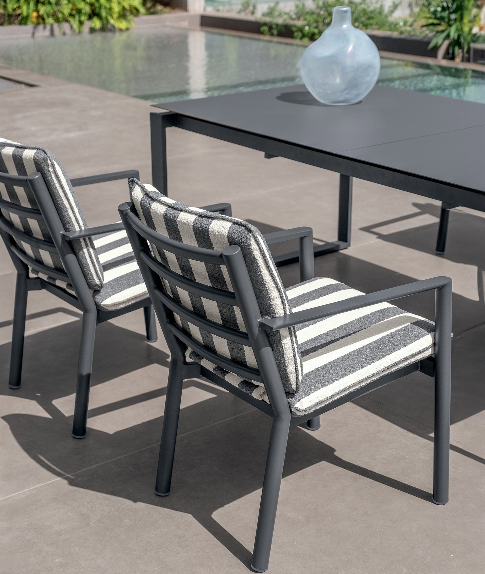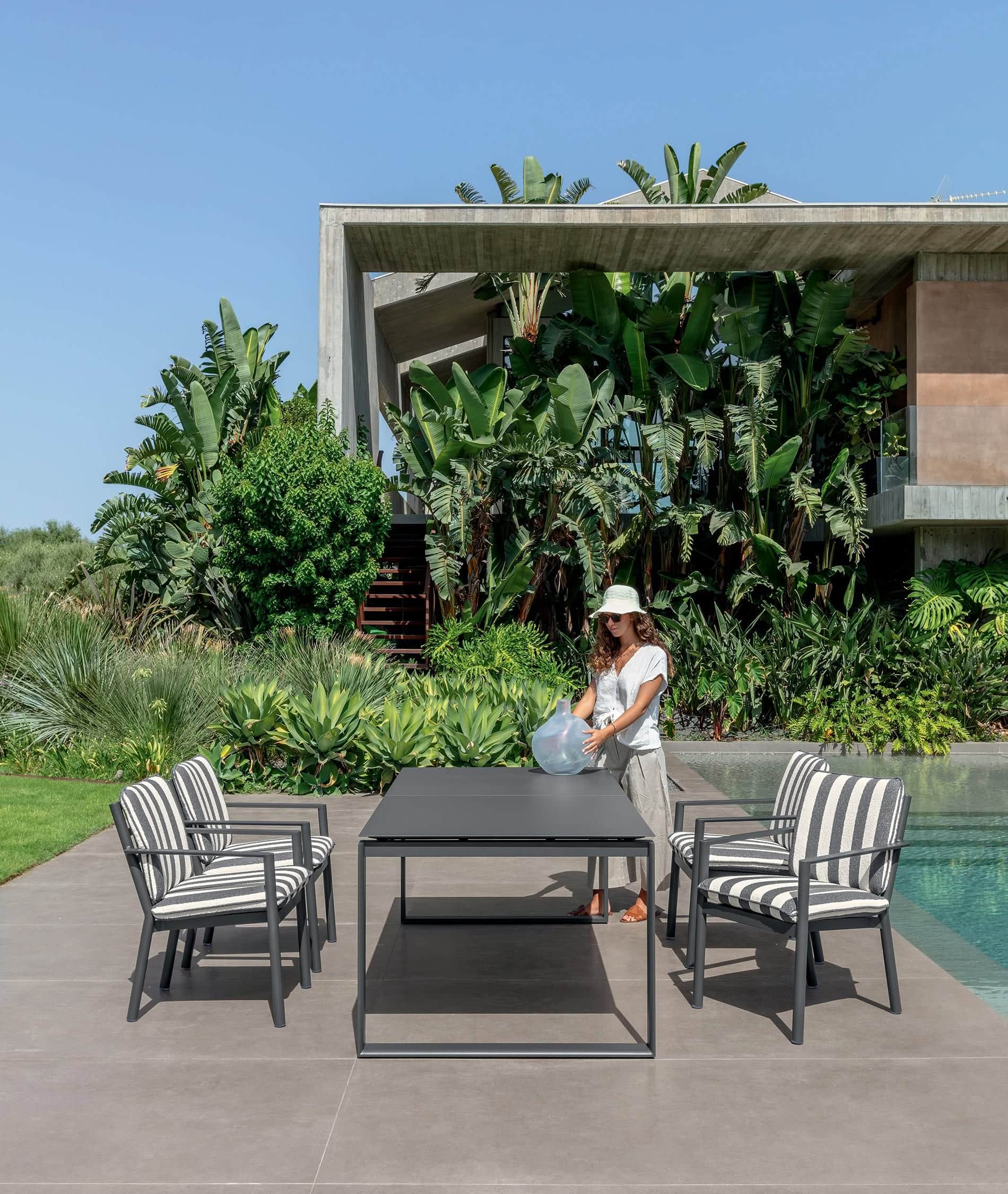 The Finn Extending Dining Table 205/270 by Talenti brings a quiet, architectural confidence to the outdoors. Its sled-style base keeps the silhouette clean and grounded, while the top stretches from 80.7 inches to 106.3 inches to adapt as the day evolves. Depth sits at 39.4 inches; height at 29.1 inches. The proportions feel balanced, never heavy. Designed by T-young, it carries the clear language of the Finn collection—minimal, purposeful, and easy to place.