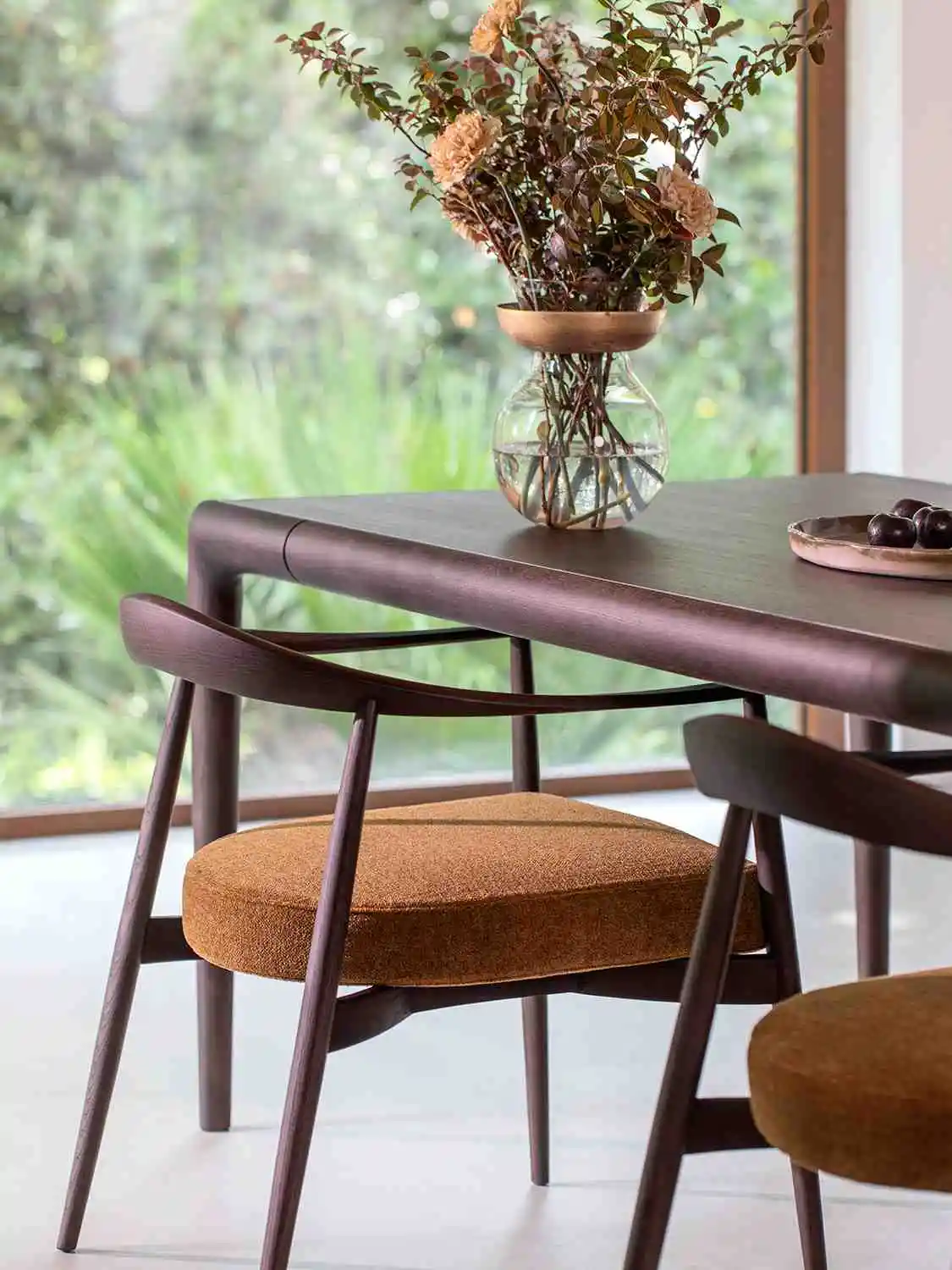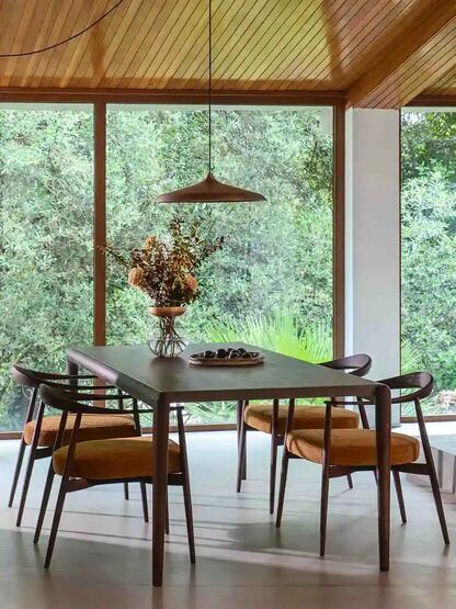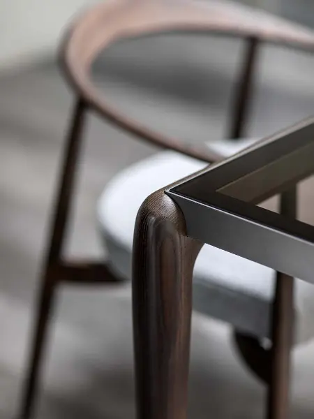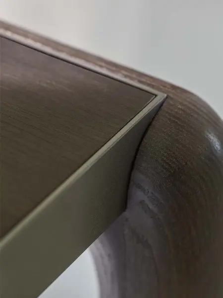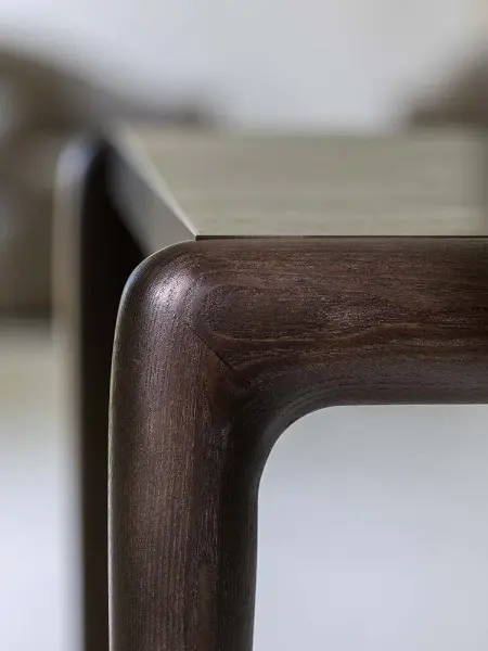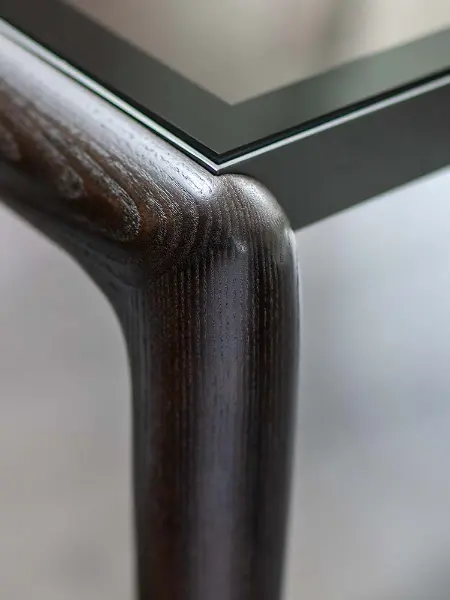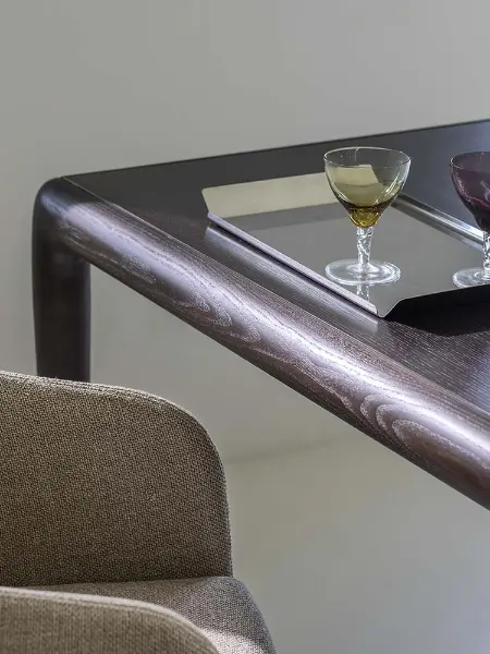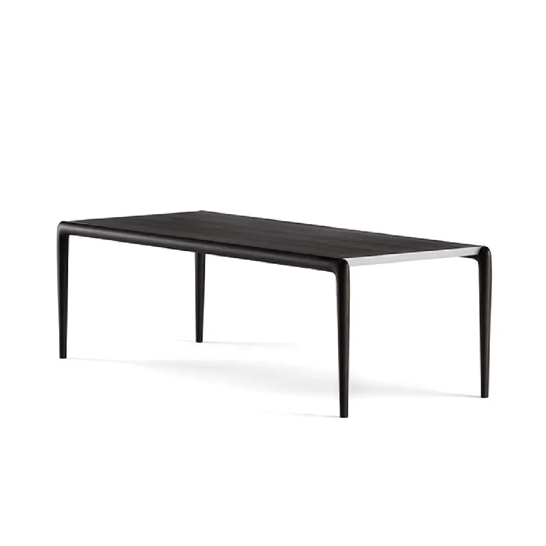 Designed by Matteo Nunziati, the Gaudí is a table that earns its place through understatement. Its dark-stained ash top sits low and wide, with softly rounded corners that avoid any sense of rigidity,a surface that invites touch as much as use. The grain runs through it quietly, present but never loud, letting the depth of the finish do the speaking.