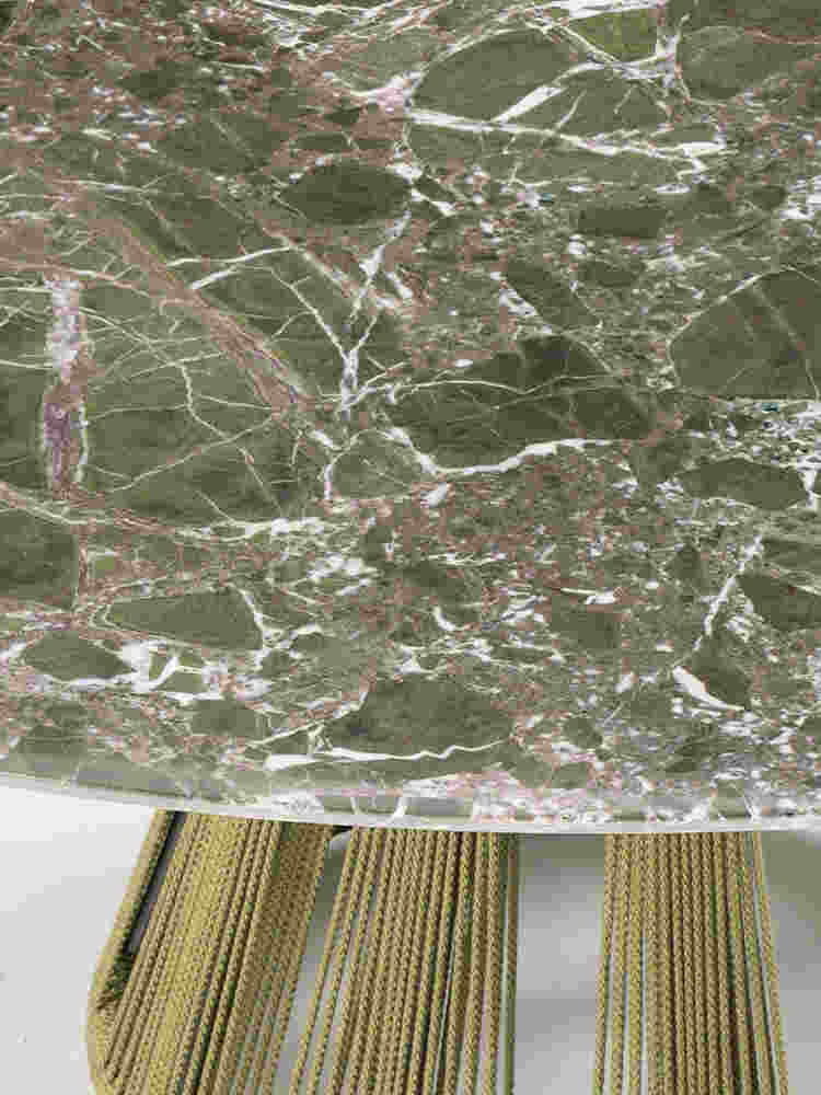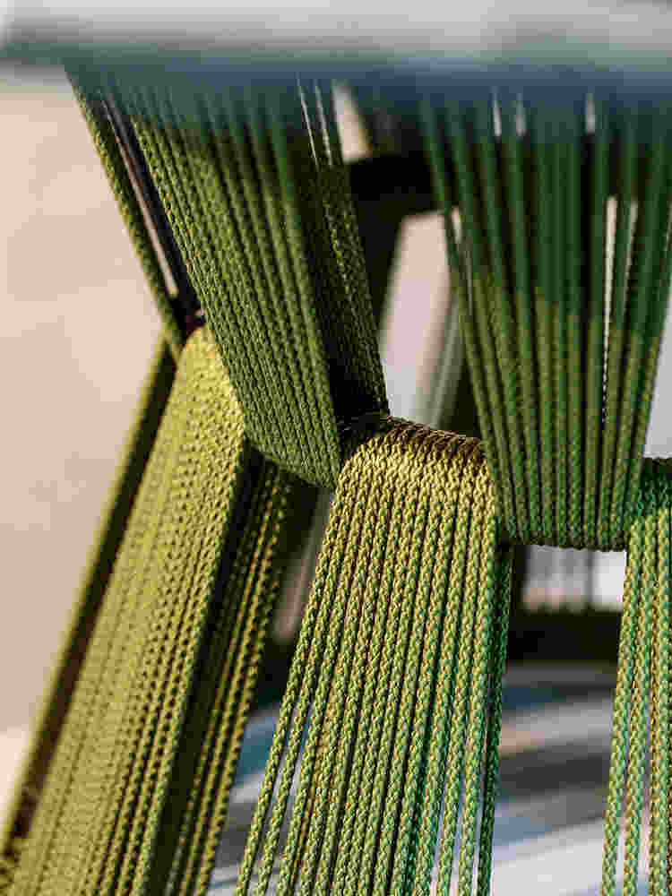 Designed by Studio Contromano, the Machard carries its extraordinary base outdoors without losing a single degree of refinement. The same densely woven cord pedestal, gathered at the waist like a lantern held in tension meets the elements in a deeply toned bronze-brown finish built for outdoor endurance. What began as an interior statement becomes, under open sky and dappled light, something even more alive.