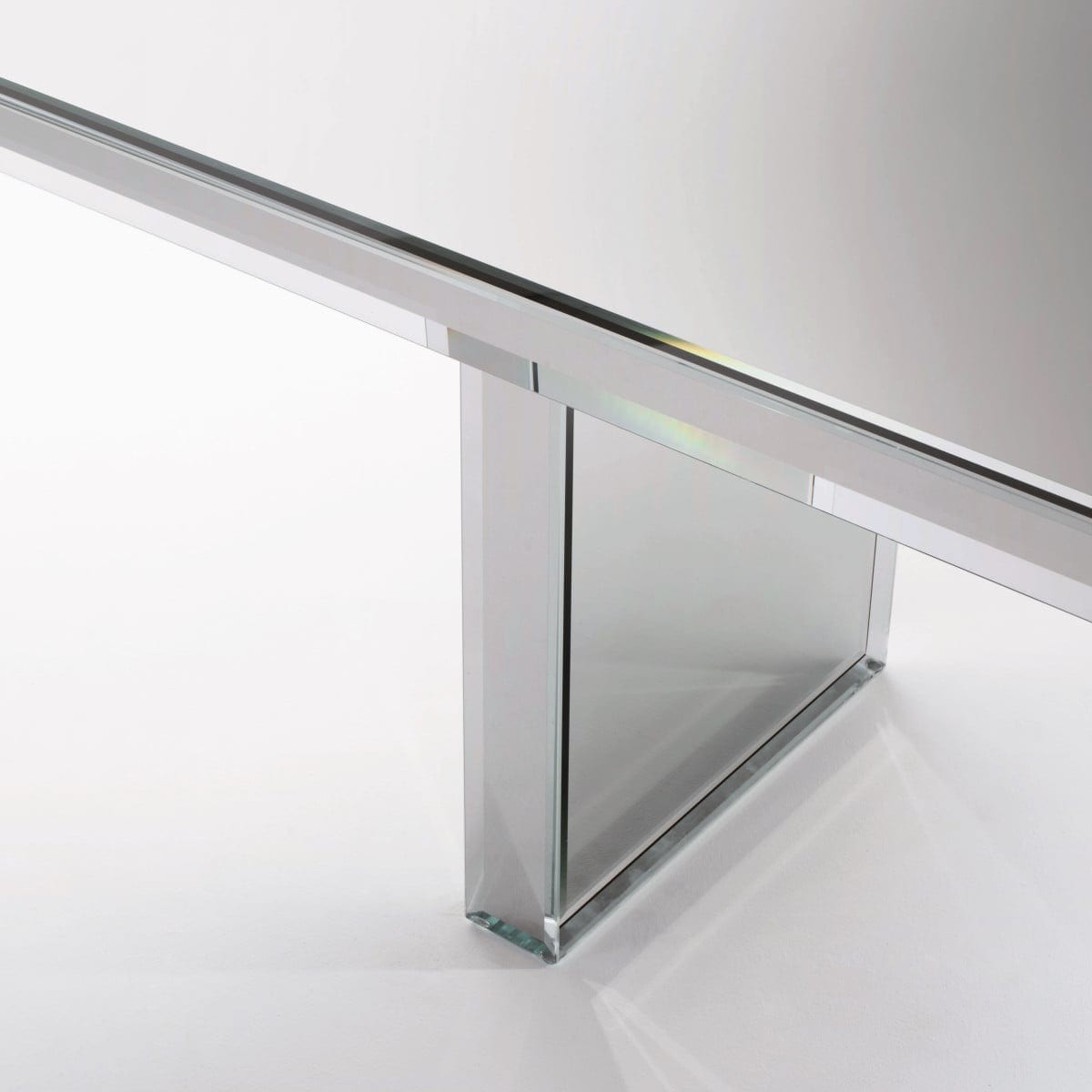 The top is made from 12 mm glass, about 0.47 inches thick, in transparent extralight silver plated mirror. That thickness gives the table a confident presence without looking bulky. The mirror effect isn’t treated like an add-on; it’s the point of the piece, and the clarity of the glass keeps it looking sharp.