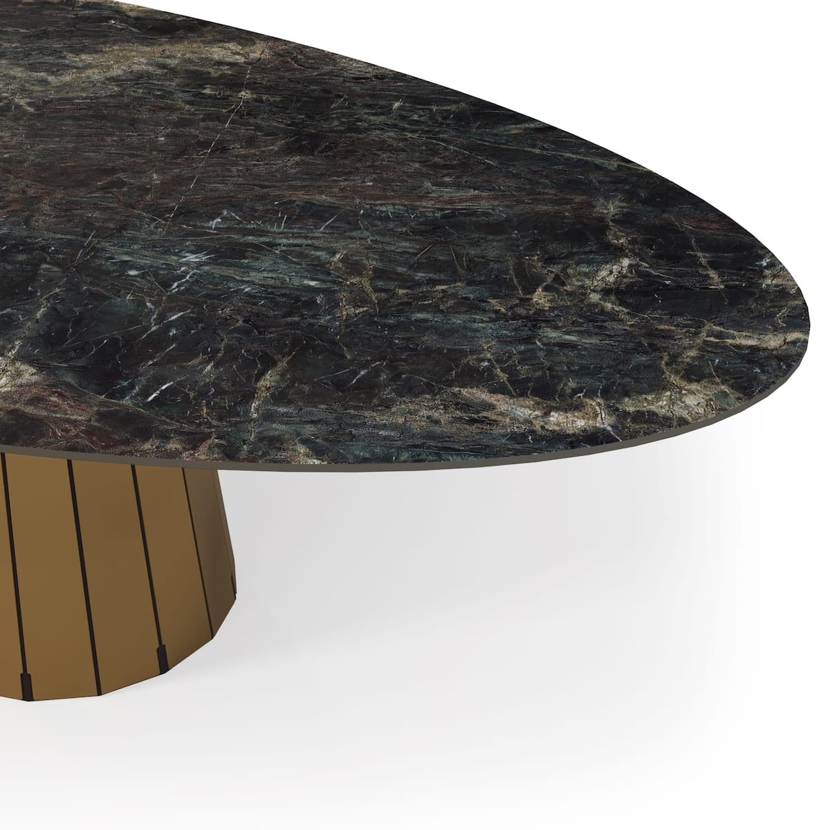 The top is marble. It delivers the visual weight that a dining room centerpiece should have, with natural variation that keeps it from looking flat or overly polished. This is where the Soho Oval Dining Table earns its presence: not through ornament, but through material quality.