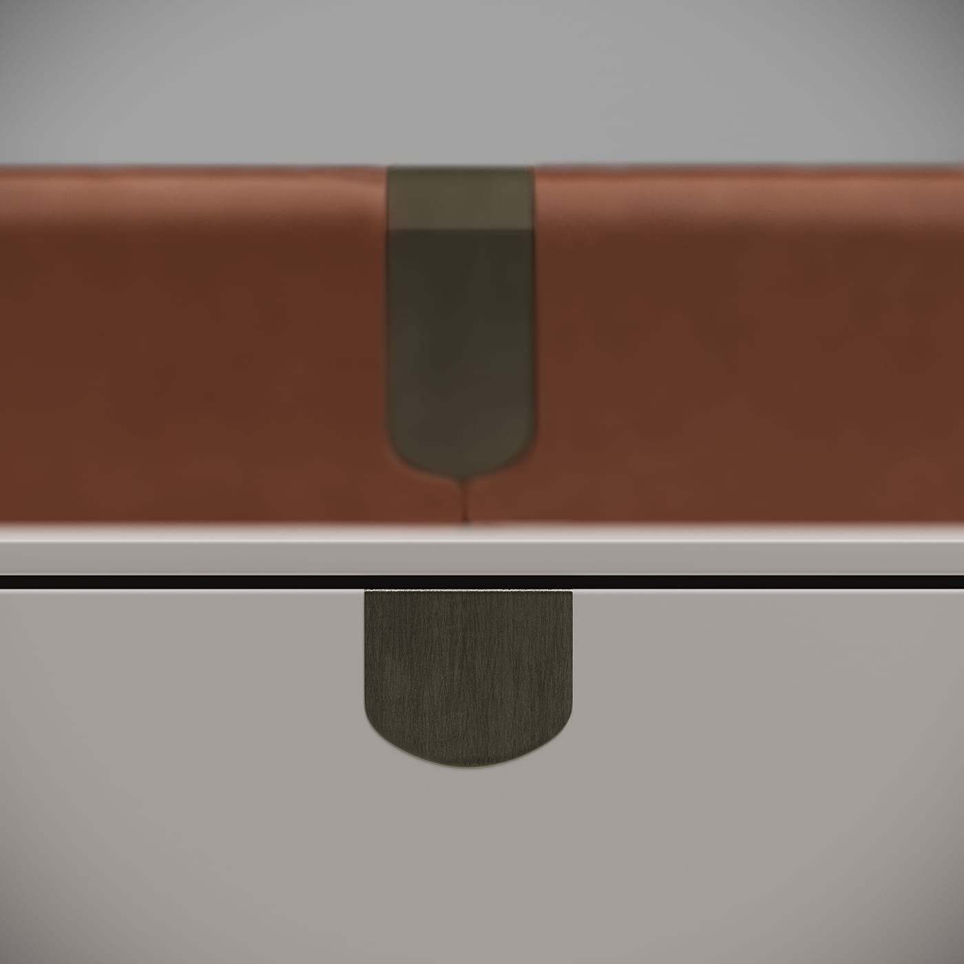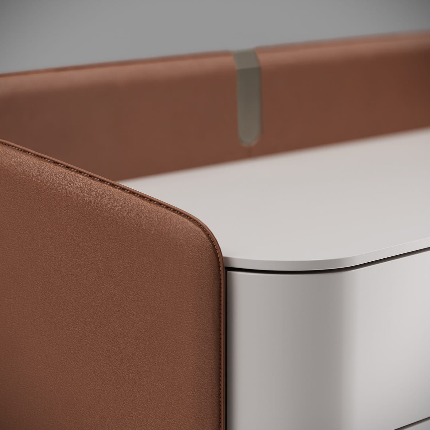 At just under 20 inches deep, Suite fits comfortably in most bedrooms, corridors or dressing spaces where floor area matters. It can anchor a wall beneath a mirror, align with a bed platform, or stand alone as a focal storage piece. The leather and wood finishes pair easily with both upholstered and timber beds, so it slots into existing schemes without insisting on a full redesign.