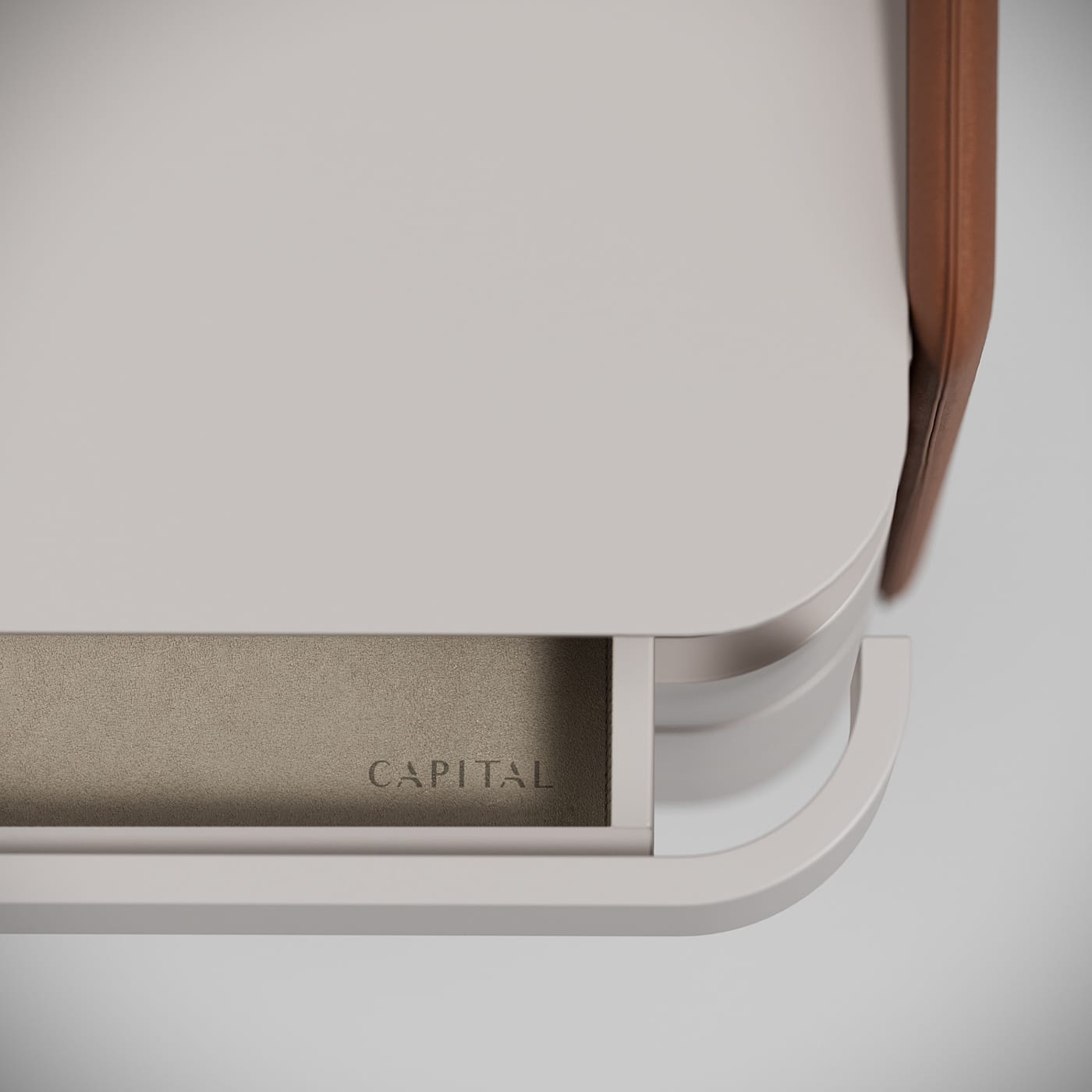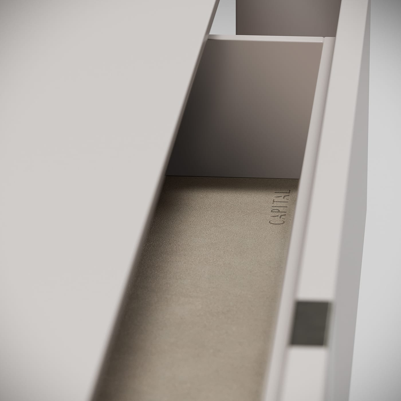 The drawers are finished in a lacquered push-pull system. No handles, no visible hardware, just a light pressure to open and close. This detail keeps the lines uninterrupted and gives the piece a modern, almost architectural character, typical of Capital’s 2024 chest of drawers collection.