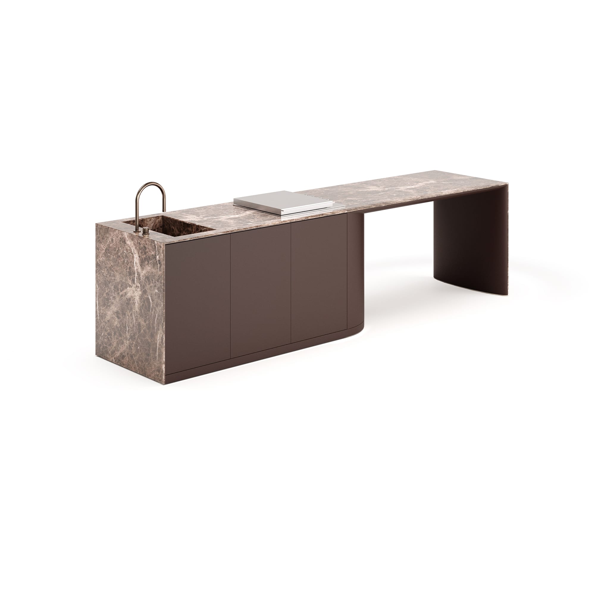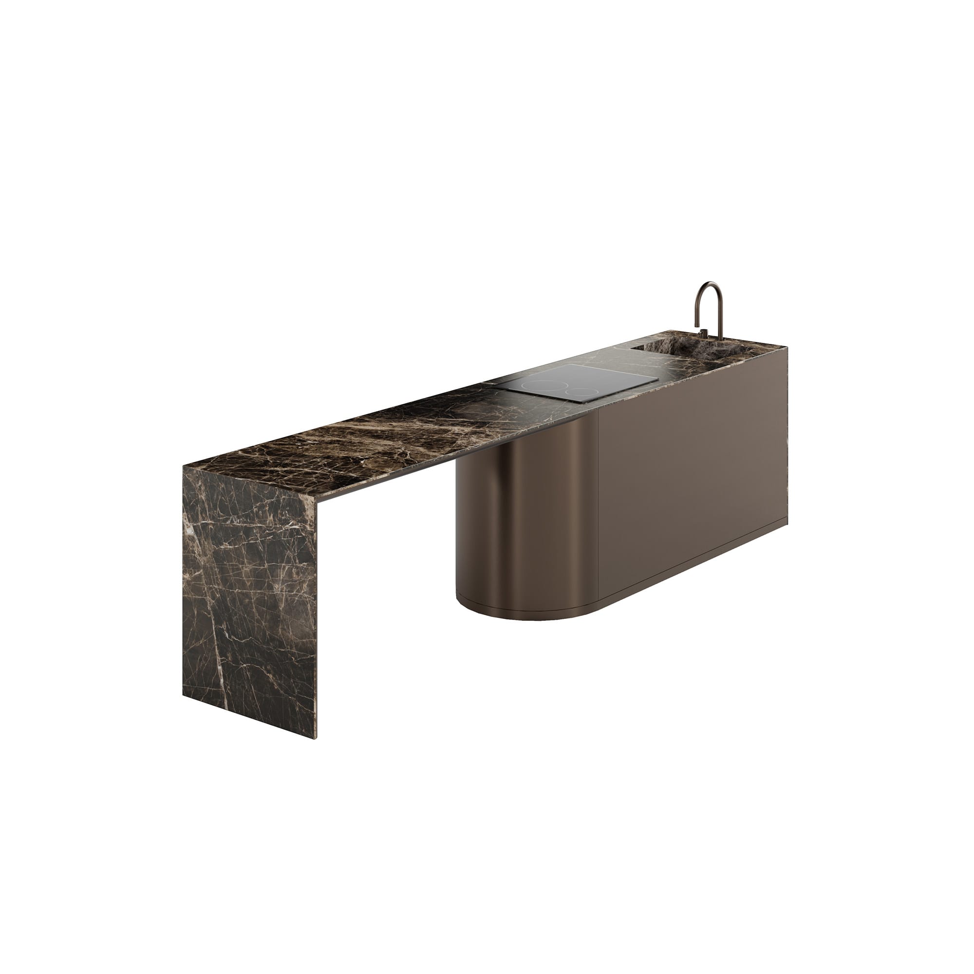 With its long, linear footprint, the Zest Kitchen works best as a focal point along a terrace wall or as a statement run beside a dining zone. It can anchor a dedicated outdoor kitchen area, but it also suits smaller settings where one well-designed piece does most of the work.