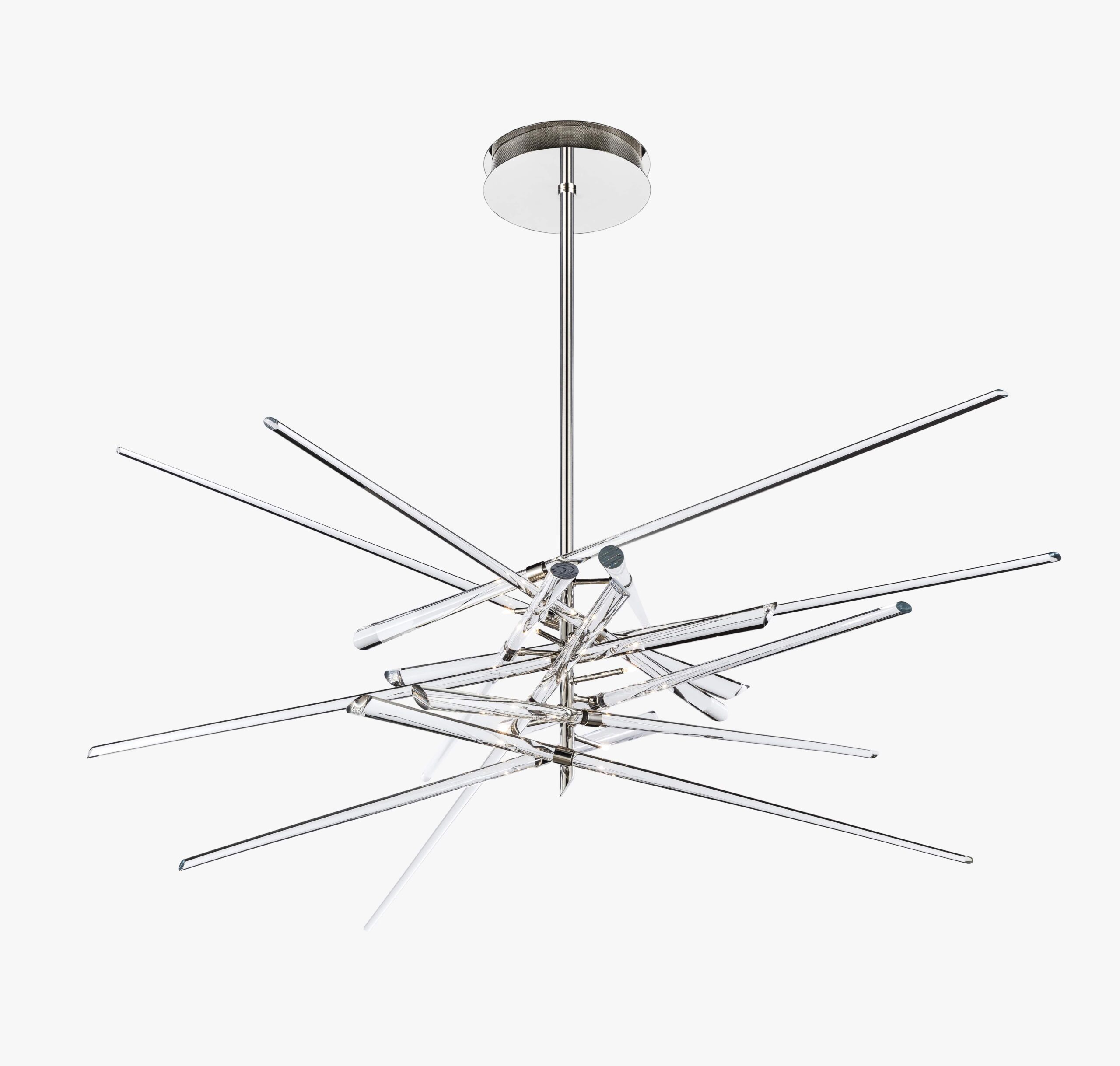This is a lighting sculpture—meant to be seen from below, from across the room, and from every angle in between. It holds space in a double-height entry, over a stairwell, above a dining table, or in a lounge where conversation matters. Hospitality settings benefit from its scale and clarity; private interiors gain a singular focal point that doesn’t compete with architecture.