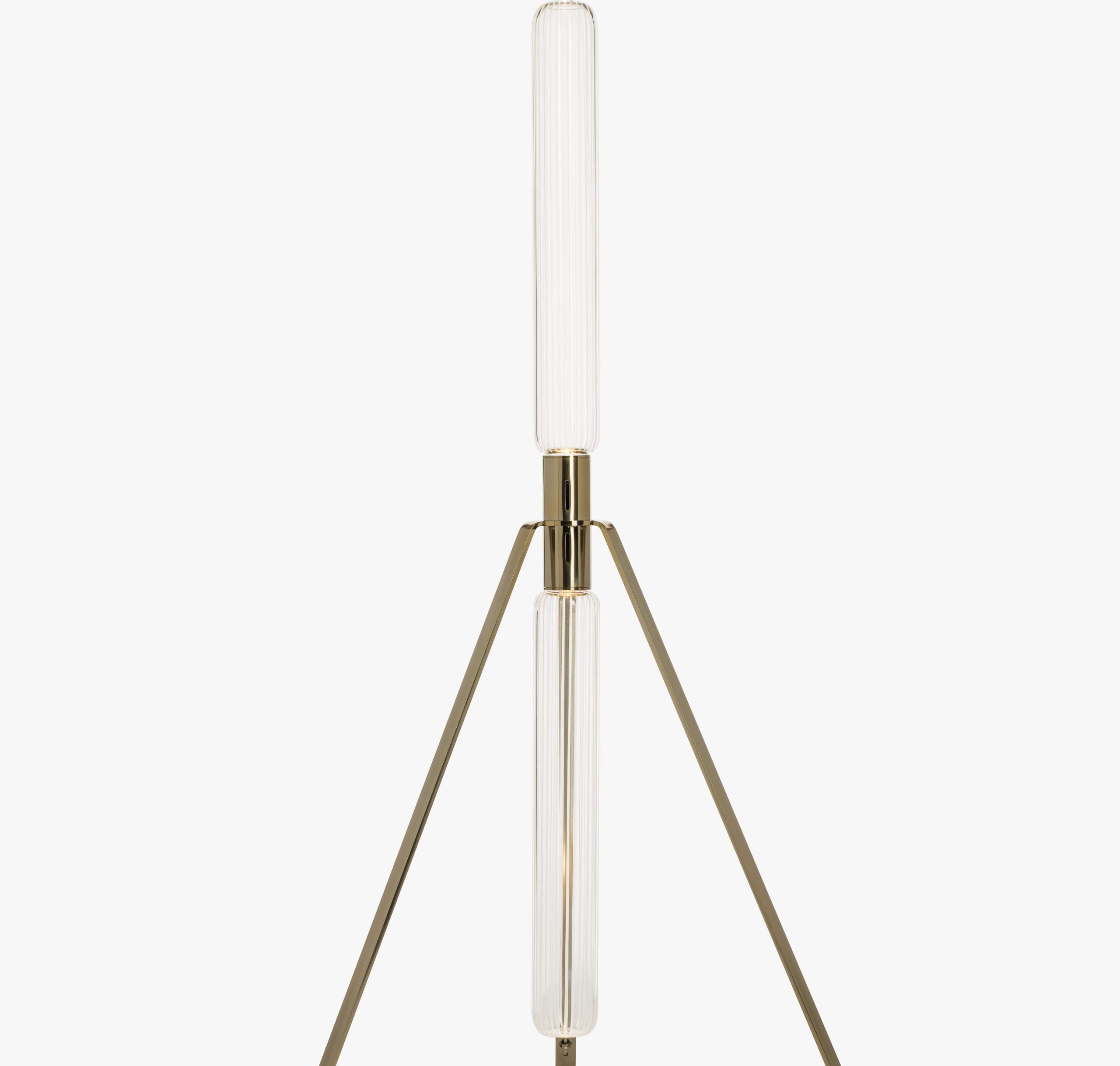 The Cipher Base Size Floor Lamp by Lasvit distills an idea to its essentials: heritage craft shaped into a clean, contemporary line. Designed by Yabu Pushelberg, the lamp reads as a measured sequence of crystal elements, each one aligned to create a quiet, linear rhythm. Light appears to pause and gather at the connection points, then recede, giving the piece a gentle cadence rather than a constant glow.