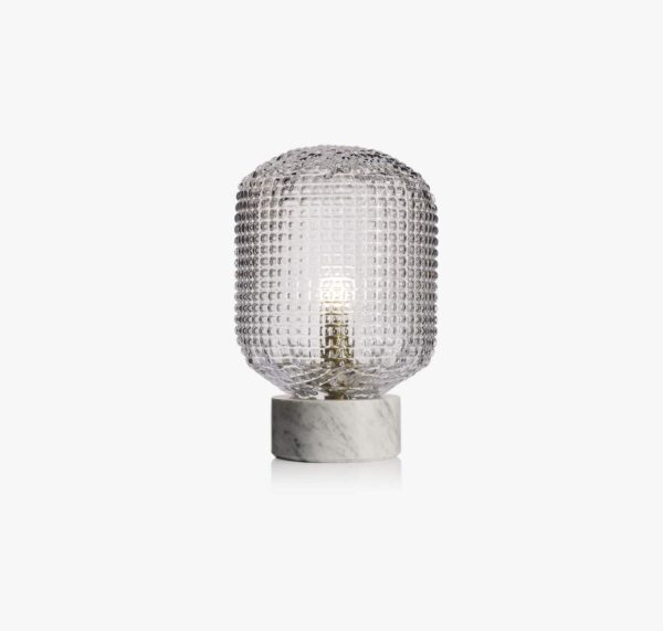 The effect is quietly dramatic. Light moves through the clear glass blocks, catching edges and softening at the same time. The surface detail breaks up glare and creates a comfortable, ambient glow that settles into the space instead of beaming out of it. It’s a lamp that eases the atmosphere—welcoming, reflective, and composed.