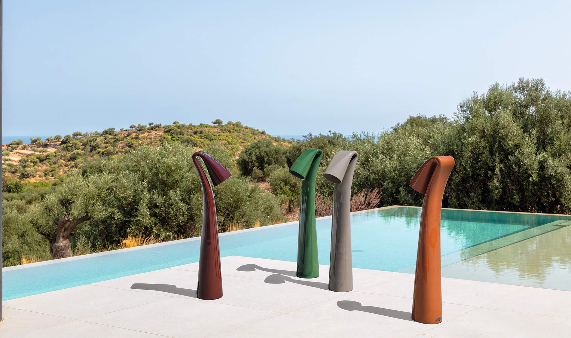 In a living room, the Swan Lamp L tucks neatly beside a sofa or lounge chair, adding vertical rhythm to low seating. In an entry, it frames the path and gives a gentle welcome. It works just as well in a bedroom or a private office where a clean profile matters. The finish options make styling straightforward: dove for a cool, understated look; cinnamon or orange for warmth; green for a refined, modern accent. Used sparingly, it becomes an anchor. In pairs, it brings balance to larger rooms.
