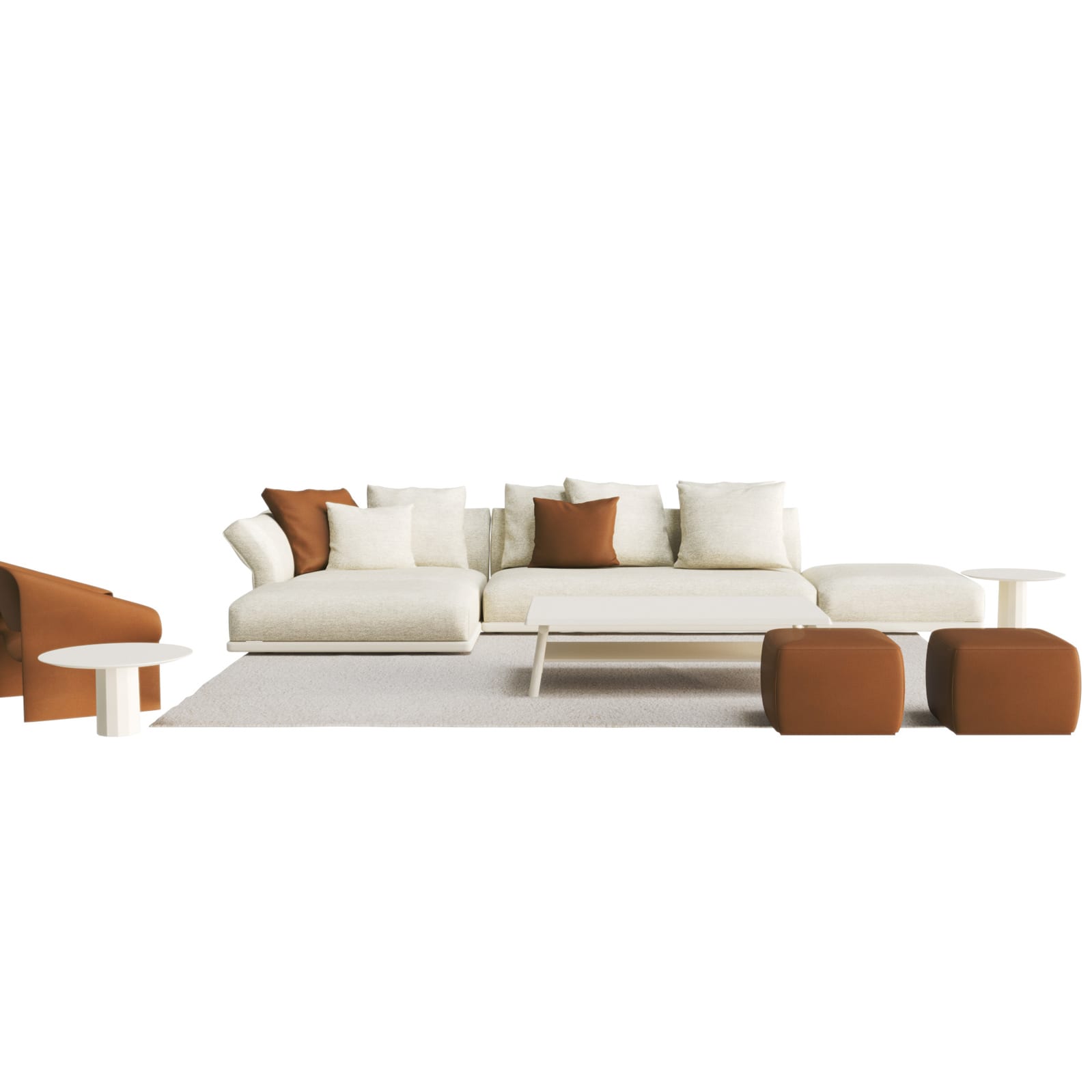 Modularity here is really about layout freedom. End units, corner pieces, left and right configurations — the system adapts to rooms of different scales and shapes. A compact city apartment gets a tailored L-shape. A larger living space gets something more expansive. The design doesn’t lose coherence either way.