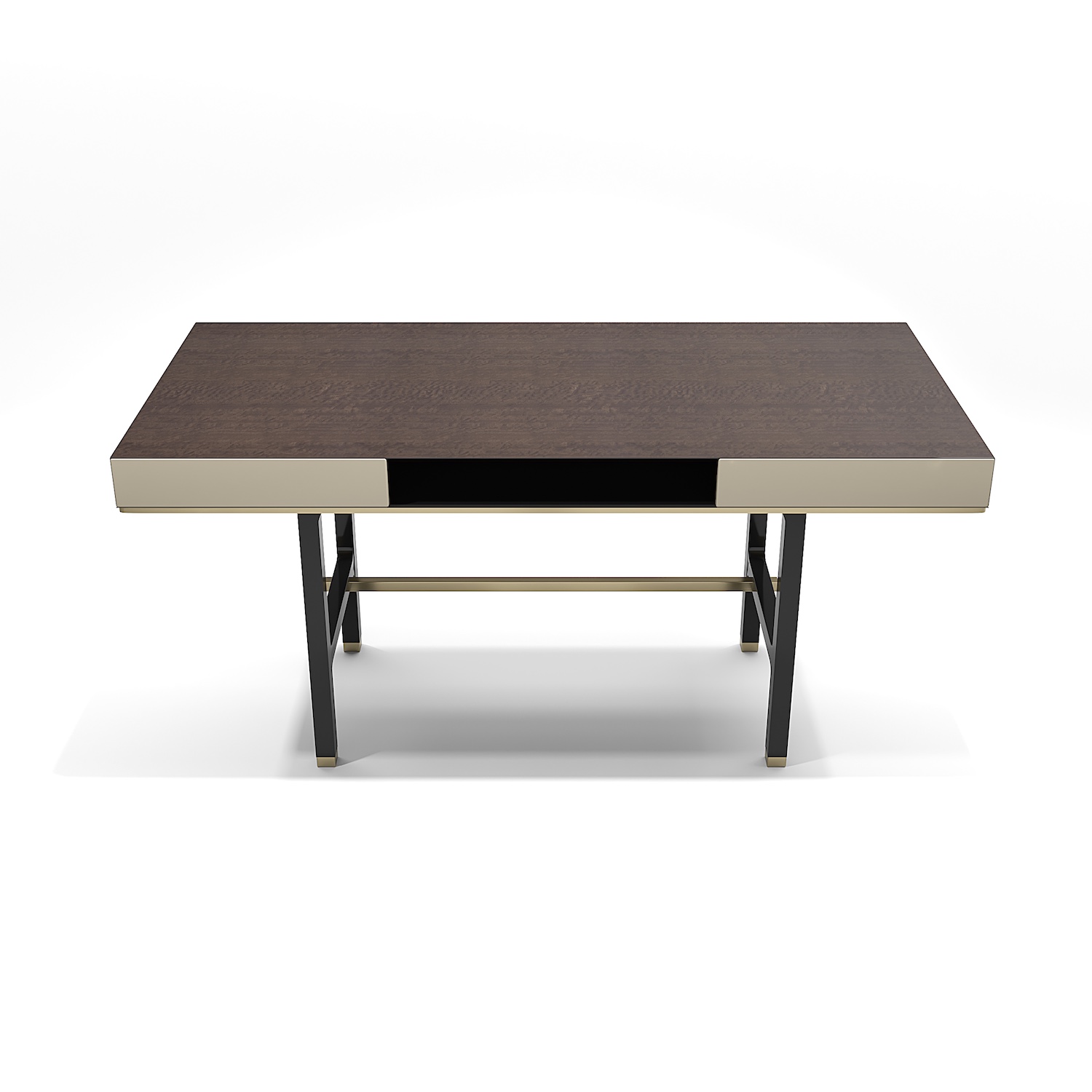 At its core, Bolivar is a wooden structure, finished to highlight a solid, composed presence. Lacquered legs and lacquered side drawers bring a smooth contrast to the natural warmth of the wood, keeping the whole desk visually coherent and modern.